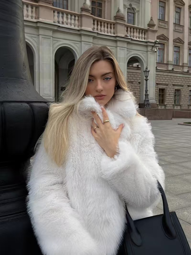 Европейская и американская мода, однотонная высококачественная экологичная меховая куртка, новинка осени и зимы 2025 года, сексуальный и элегантный тренд.