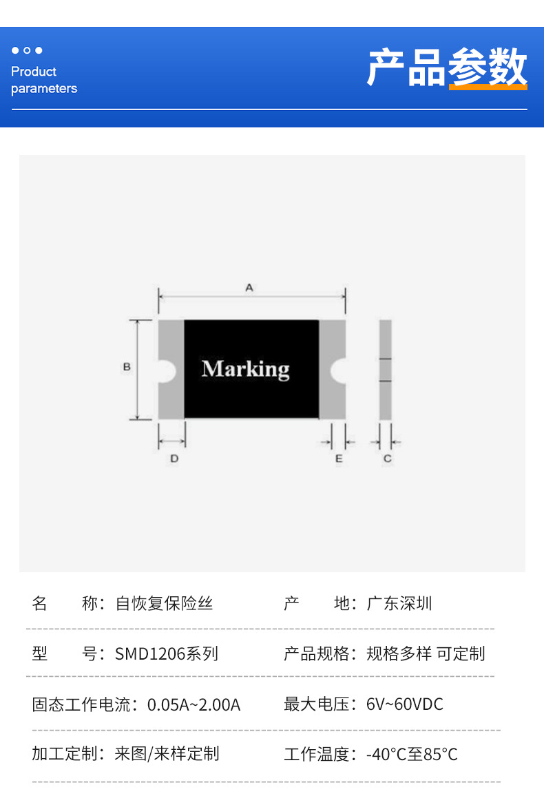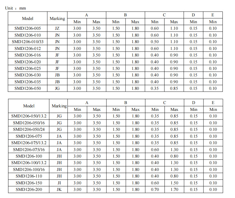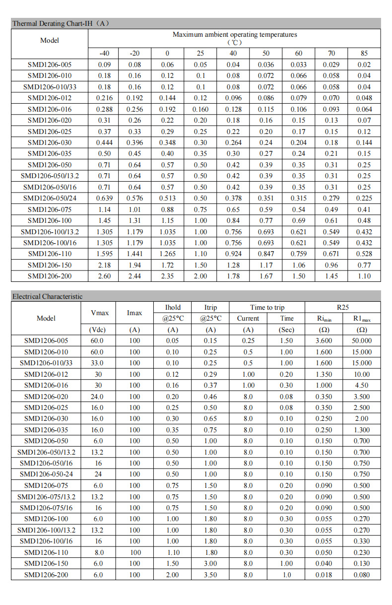 SMD1206-0.05A; SMD1206-0.1A; SMD1206-0.12A; SMD1206-0.2A; SMD1206-0.25A; SMD1206-0.3A; SMD1206-0.35A; SMD1206-0.5A/16V; SMD1206-0.5A/30V; SMD1206-0.75A/13.2V; SMD1206-0.75A/24V; SMD1206-1A/8V; SMD1206-1A/16V; SMD1206-1A/24V; SMD1206-1.5A; SMD1206-1.5A/12V; SMD1206-2A; SMD1206-2A/12V; SMD1206-3A/12V; SMD1206-4A/12V; SMD1206-5A/12V; SMD1206-6A/12V; SMD1206-7A/12V