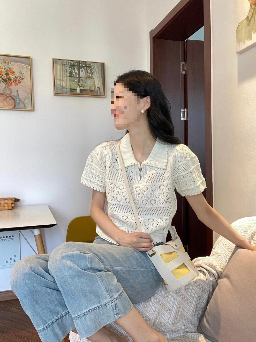 Женская футболка с короткими рукавами и французским воротником-поло D6X, летняя короткая модель с высокой талией и обычными плечами, тонкий трикотажный топ из ледяного шелка с допамином.