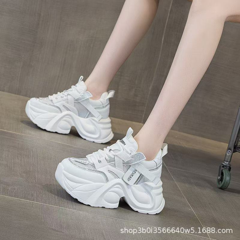 [Большое количество отправлено] Туфли для папы на толстой подошве, увеличивающие рост, прямая трансляция, популярная повседневная обувь, экспортная трансграничная спортивная обувь бежевого цвета.
