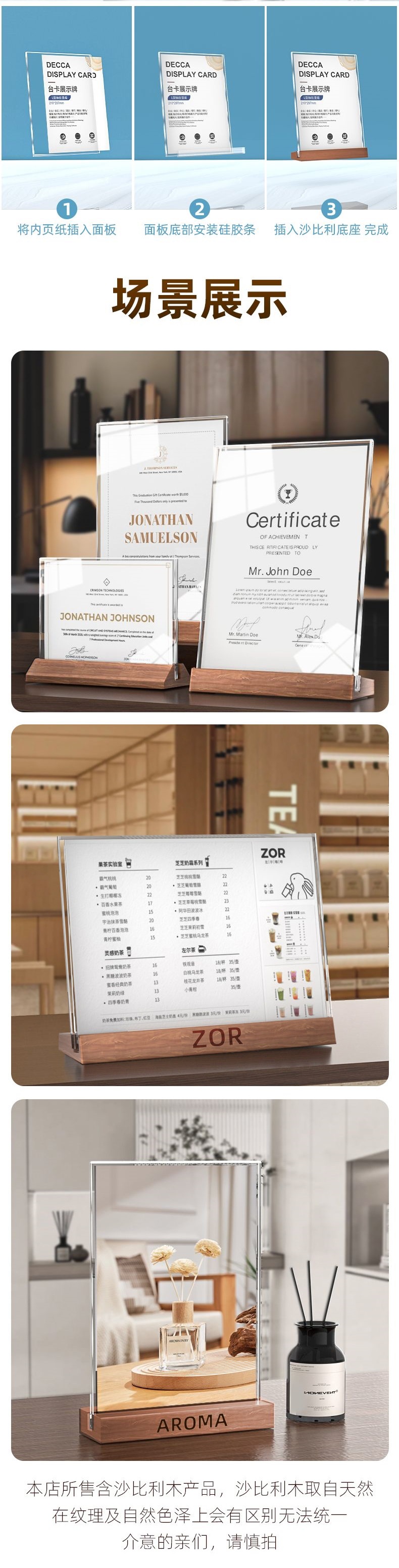 Деревянная акриловая настольная карта A4, настольная карта A5, рекламный щит, дисплейная карта A6, стоячее меню, ценник, стойка для демонстрации цен