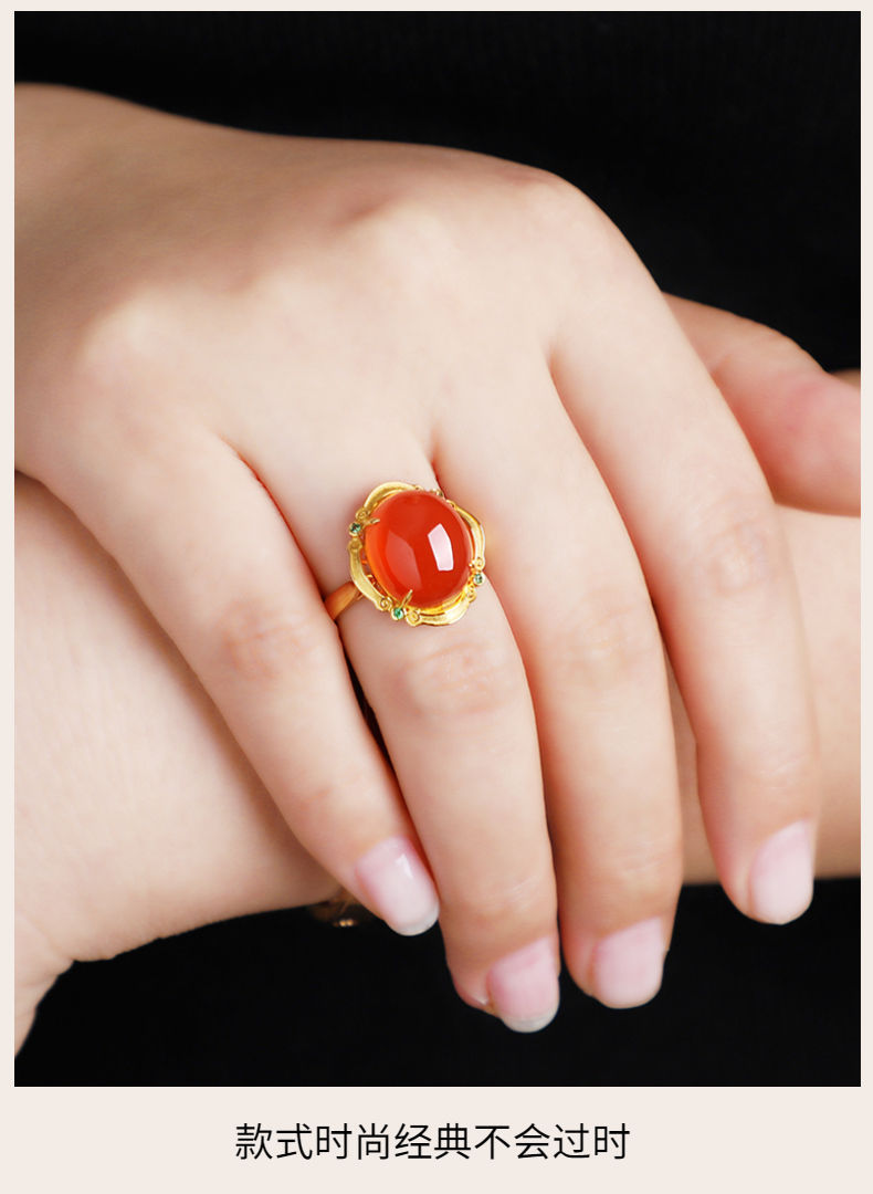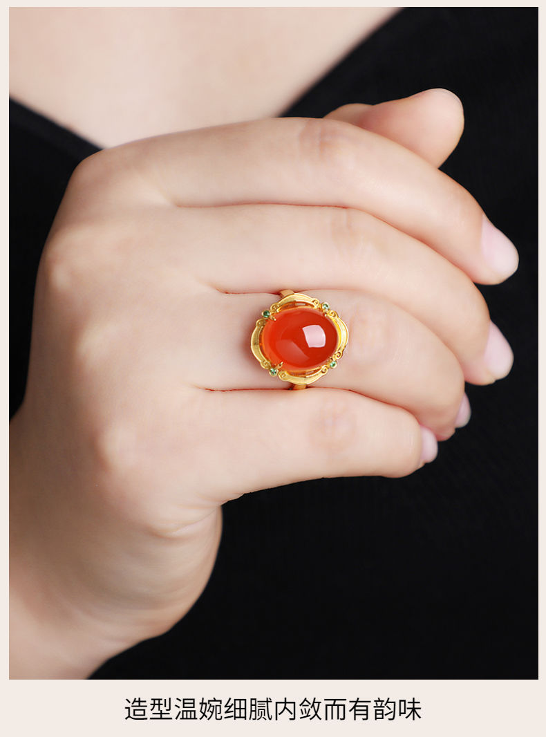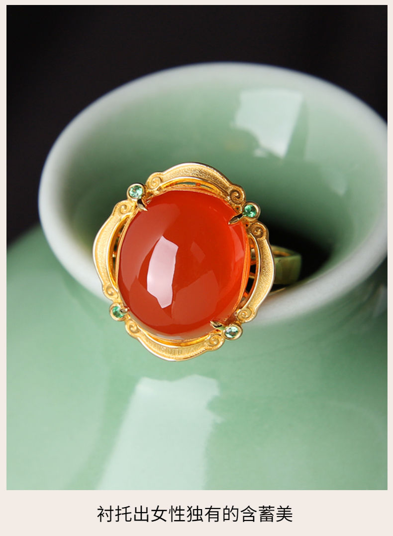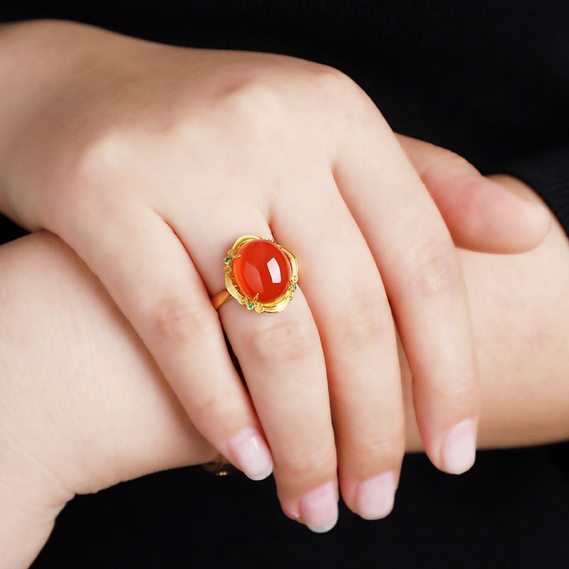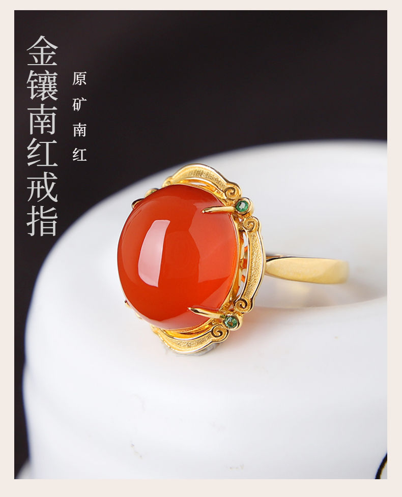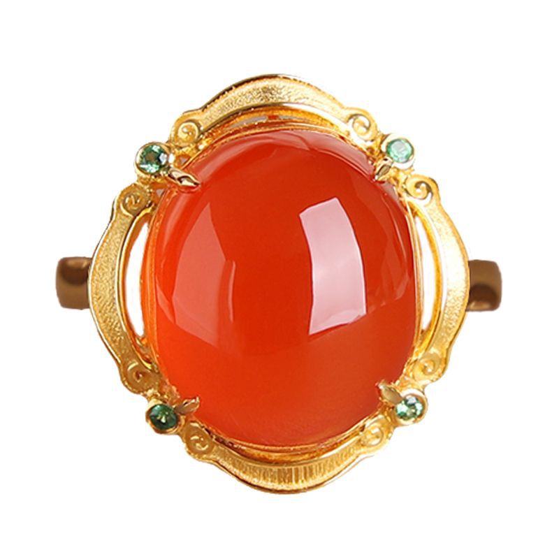 Натуральное необработанное минеральное ледяное красное кольцо из чистого серебра с инкрустацией древним золотом Баошань, южное красное кольцо для женщин, модное и элегантное кольцо на указательный палец для женщин.