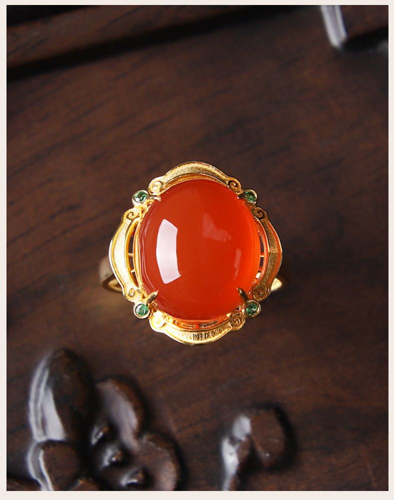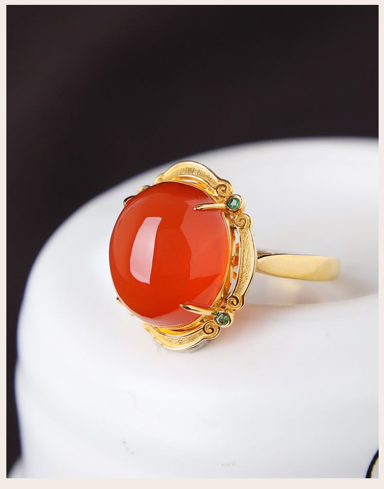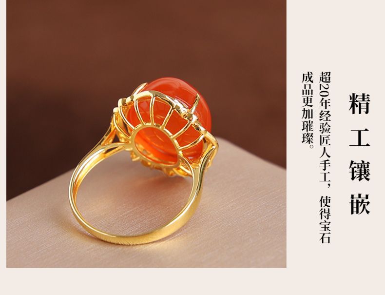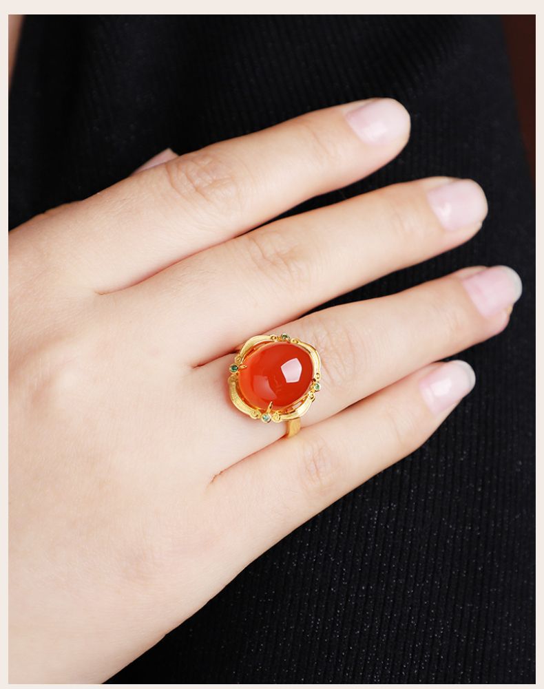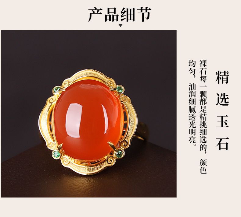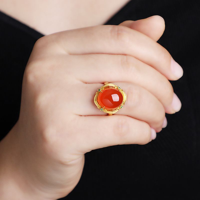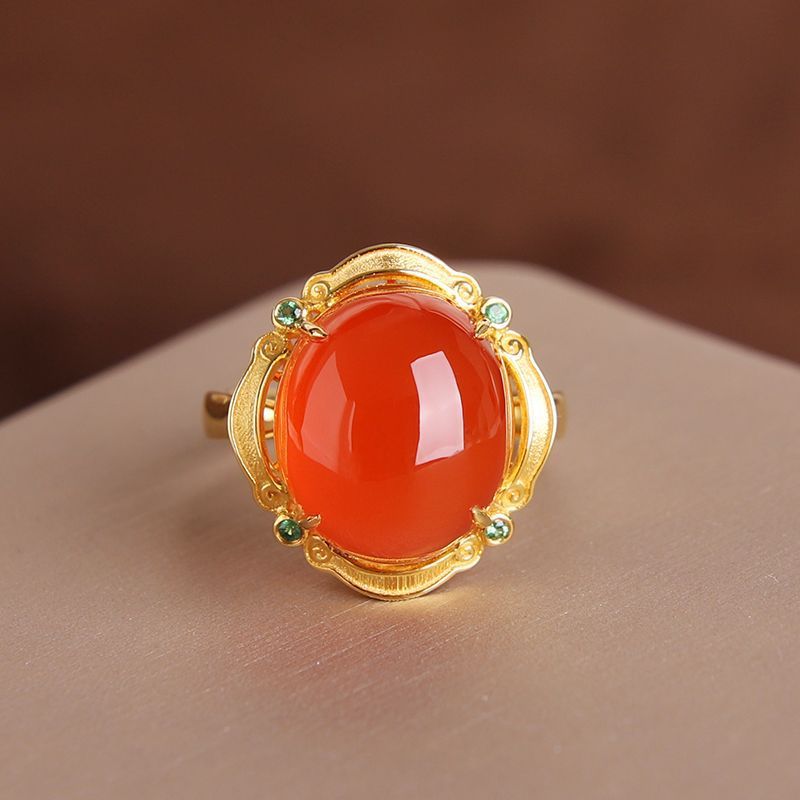 Натуральное необработанное минеральное ледяное красное кольцо из чистого серебра с инкрустацией древним золотом Баошань, южное красное кольцо для женщин, модное и элегантное кольцо на указательный палец для женщин.