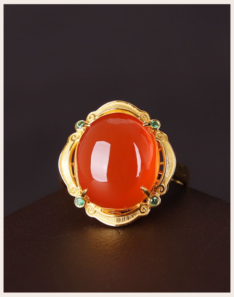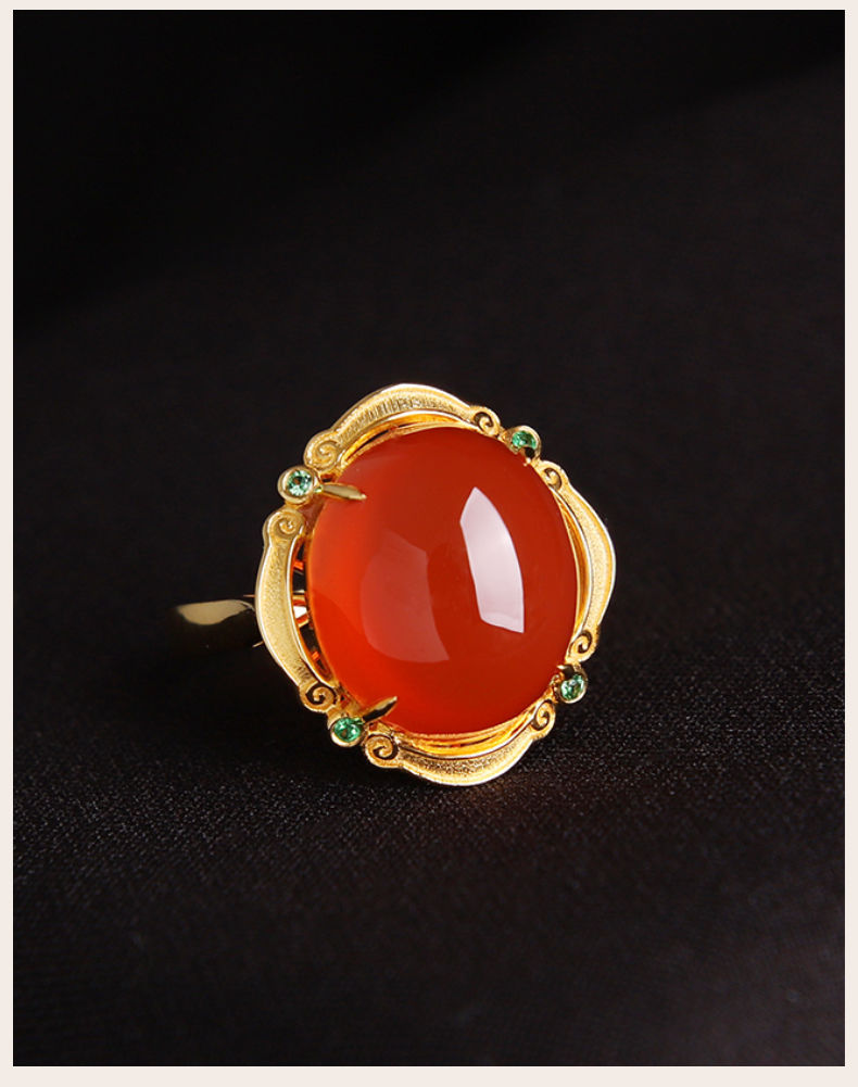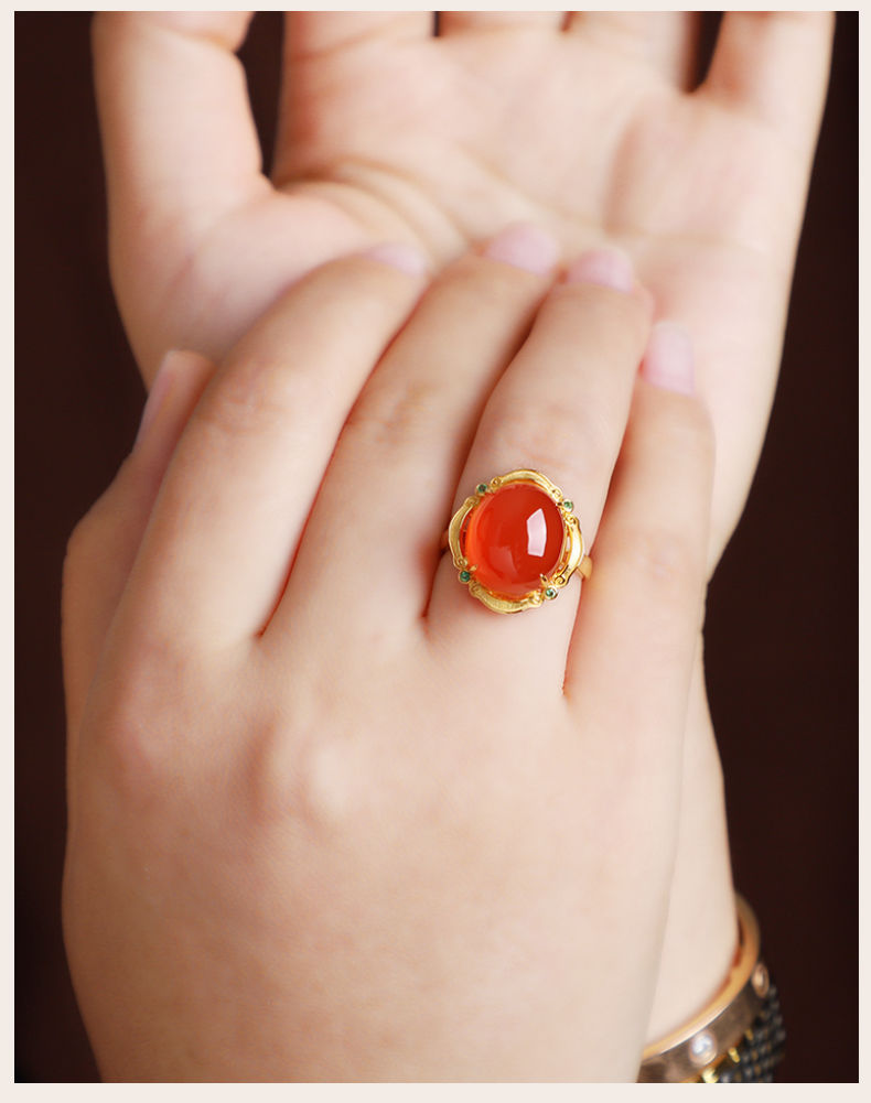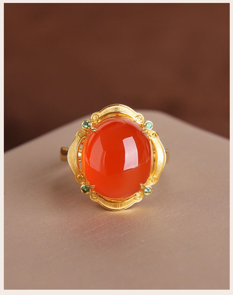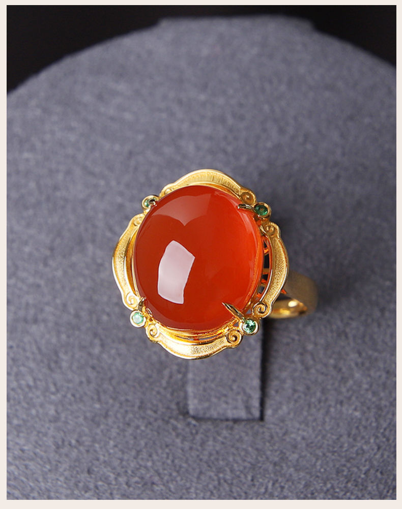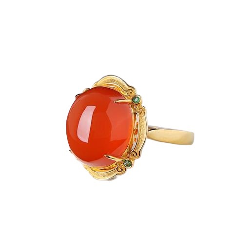 Натуральное необработанное минеральное ледяное красное кольцо из чистого серебра с инкрустацией древним золотом Баошань, южное красное кольцо для женщин, модное и элегантное кольцо на указательный палец для женщин.