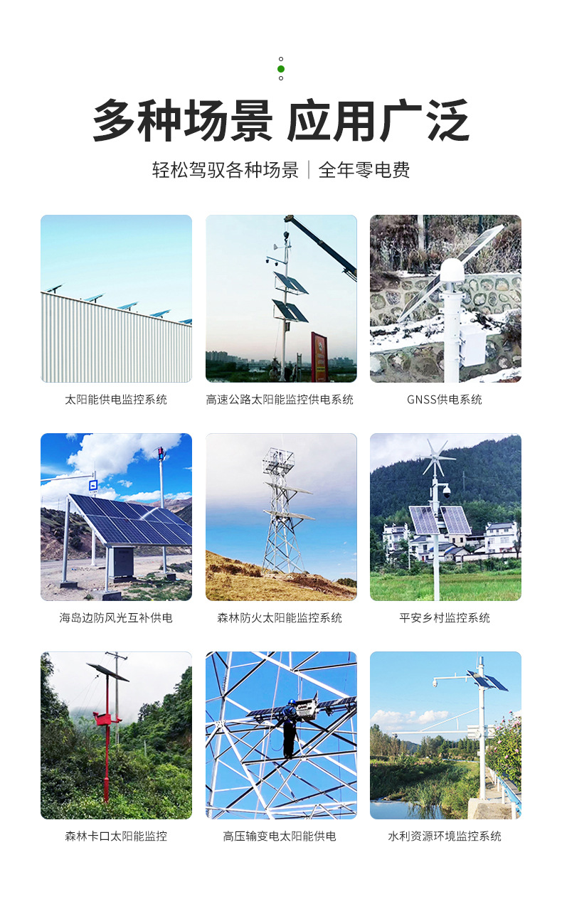 Индивидуальные солнечные (гибридные ветро- и солнечные) энергосистемы; 40 Вт-20 Ач (для небольших нагрузок, таких как датчики, приборы и т. д.); 60 Вт-30 Ач (12 В пистолет обеспечивает 3 дождливых дня); 80W-40AH (4G пулевая камера — 4 дня или 2inch шаровая камера — 4 дня); 120 Вт - 60 Ач (3 дня для машины 4inch или 2 дня для машины 6inch); 150 Вт - 80 Ач (3 дня для машины 4inch или 2 дня для машины 6inch); 240Вт-120Ач (24В4Г шаровая машина на 2 дня); 300Вт-160Ач24В4Г шаровая машина 2 дня правда; 400Вт-240Ач (24В шариковый аппарат 5 дней + 4G беспроводная линия); Ветряная турбина с вертикальной осью мощностью 300 Вт (гибридная ветро- и солнечная энергия); Модуль удаленного мониторинга IoT