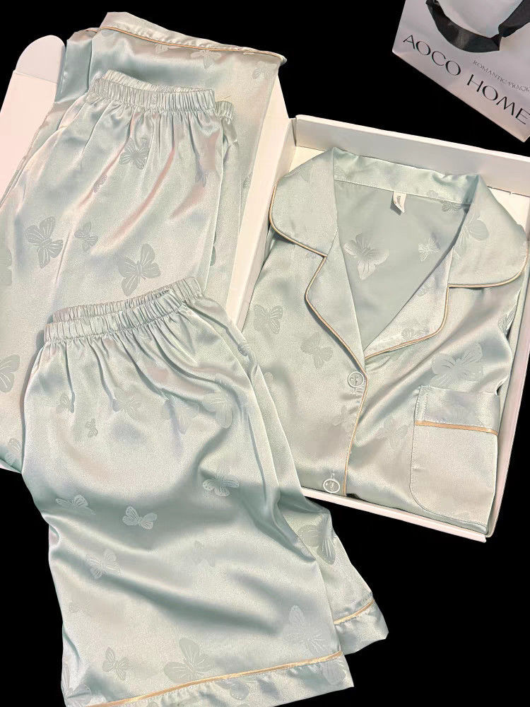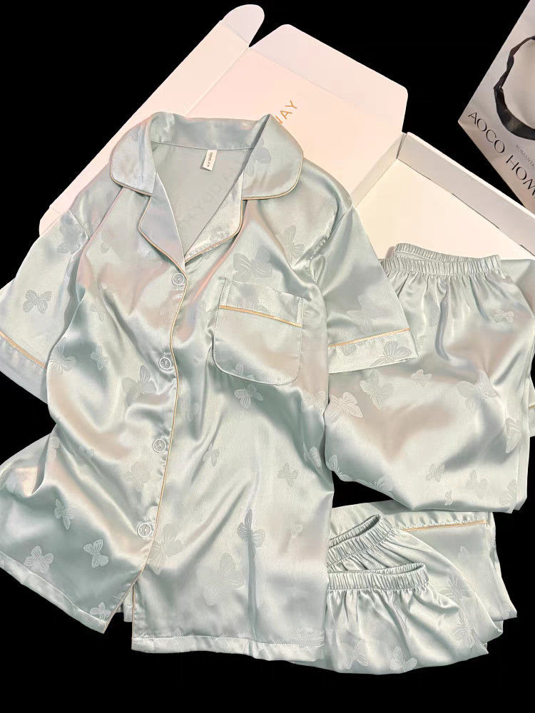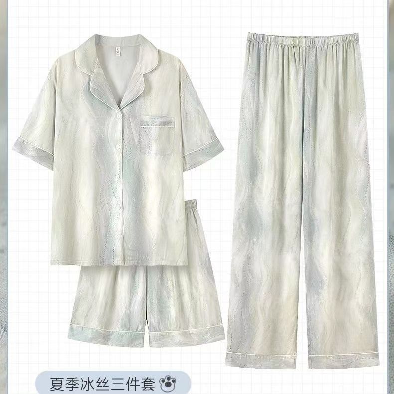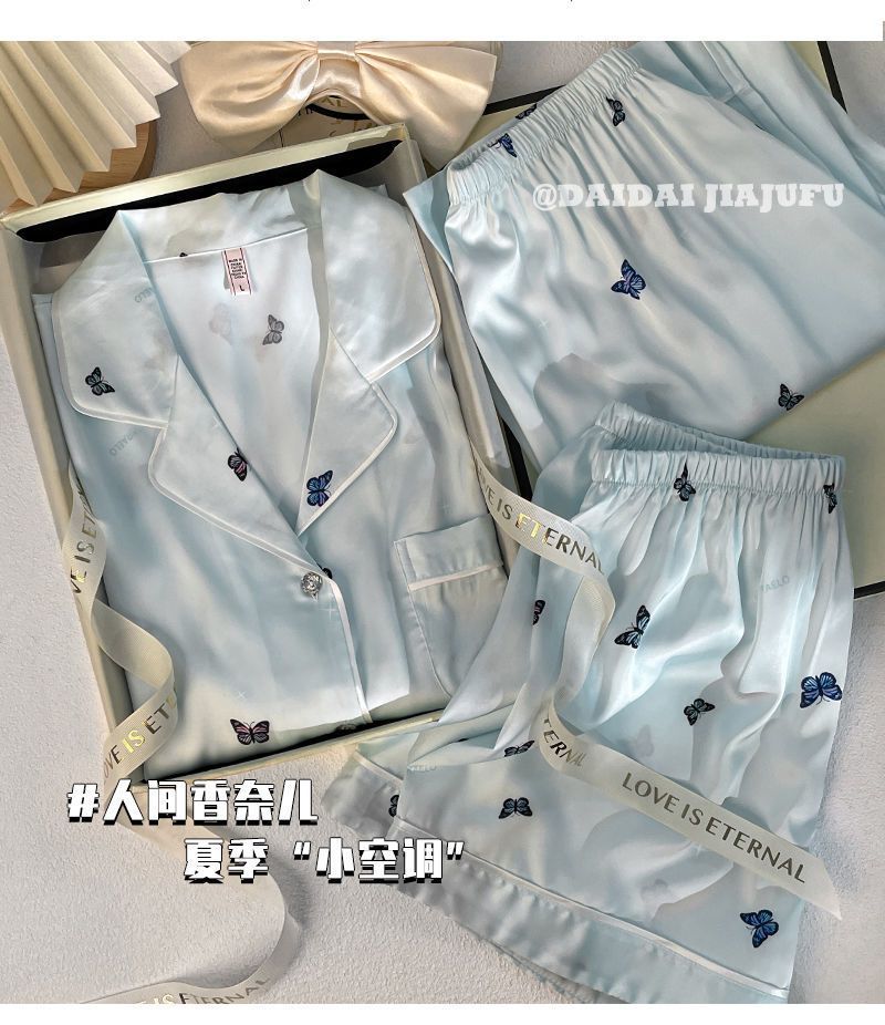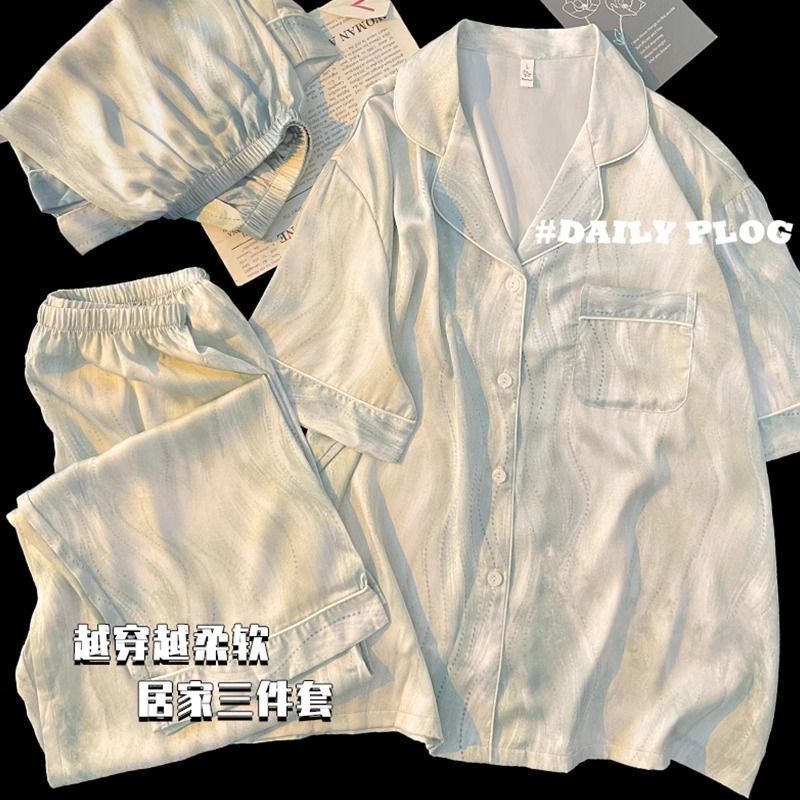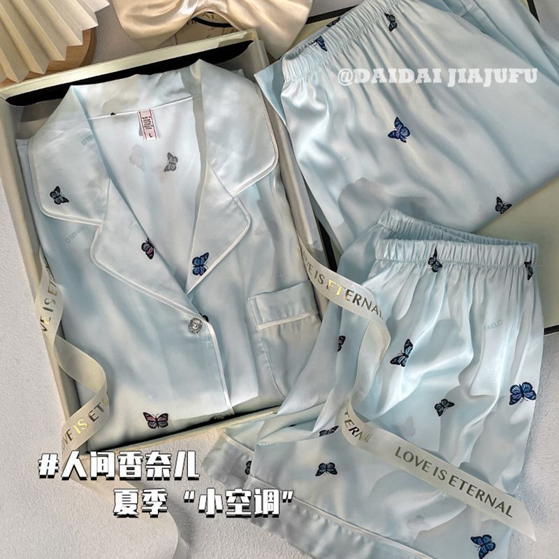 Пижамы из ледяного шелка для женщин, летние общежития, высококачественные большие размеры, домашняя одежда в стиле интернет-знаменитостей, шорты и брюки с короткими рукавами, комплект из трех предметов