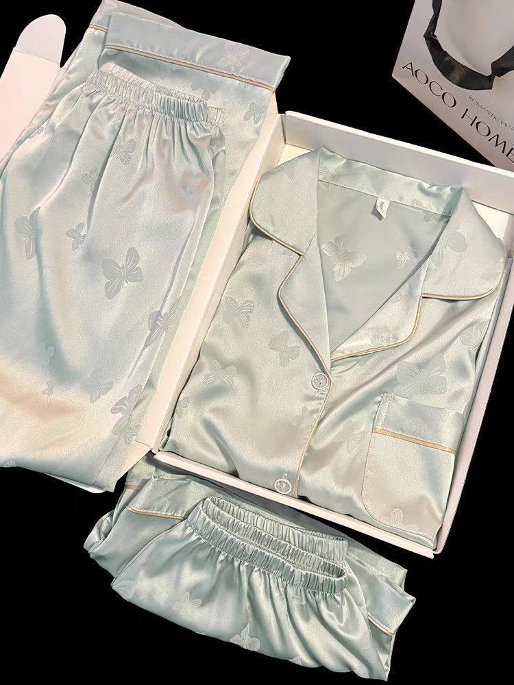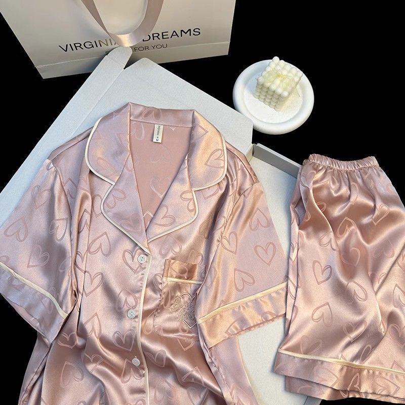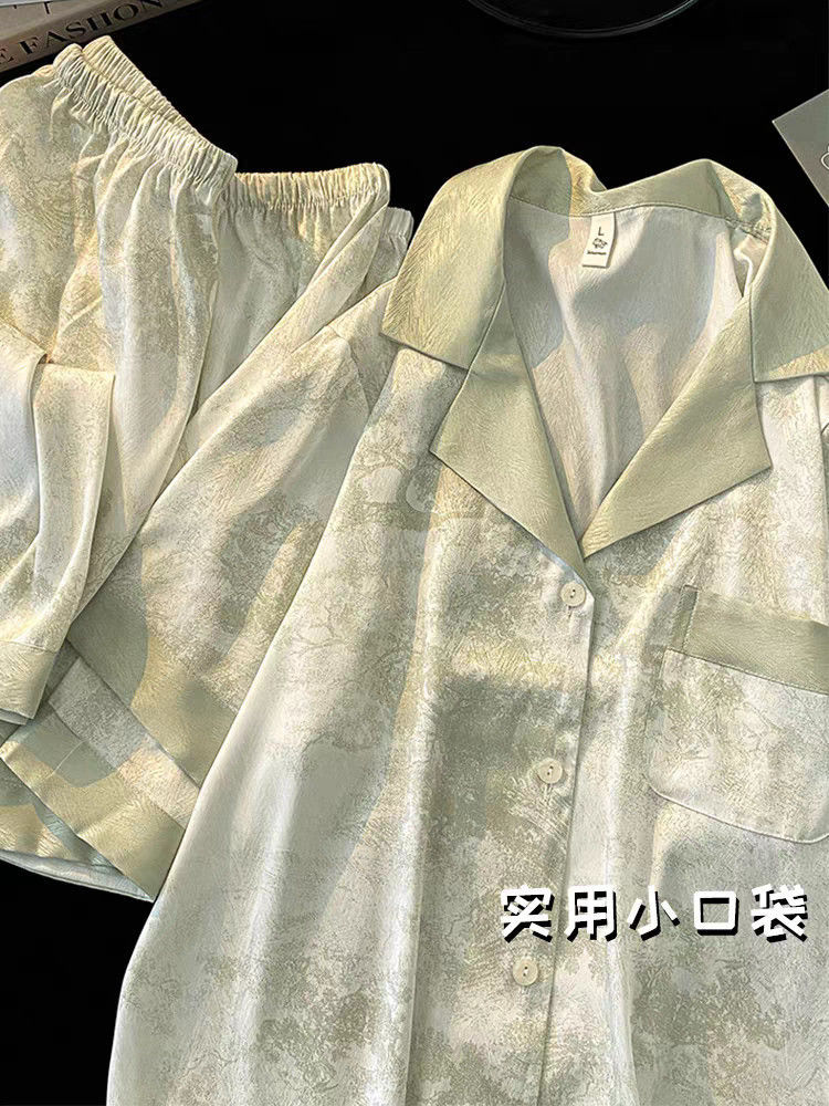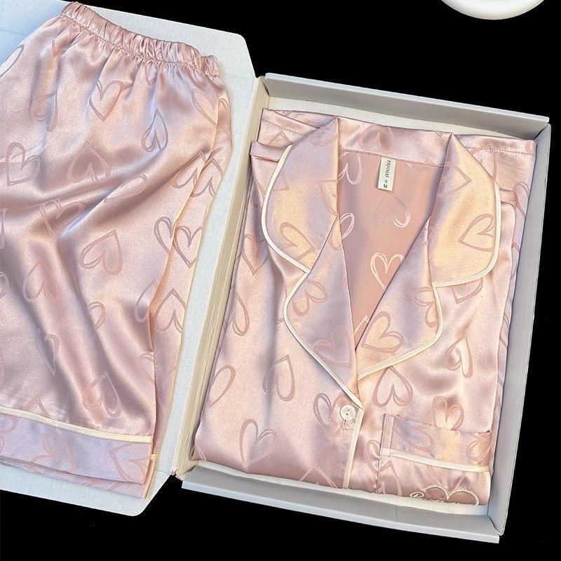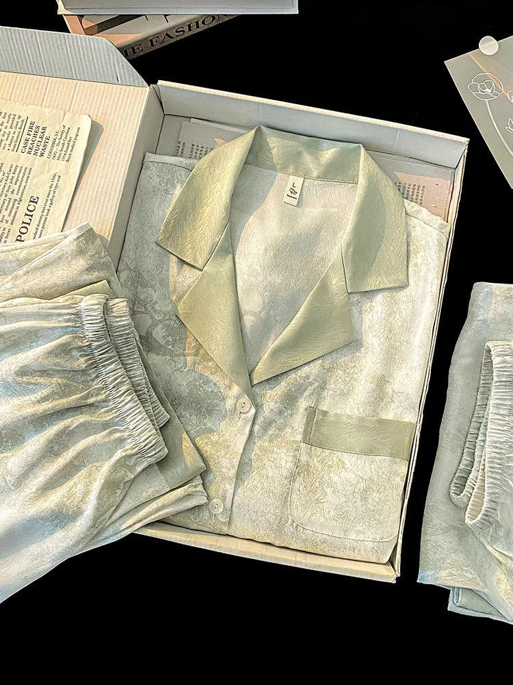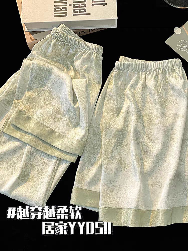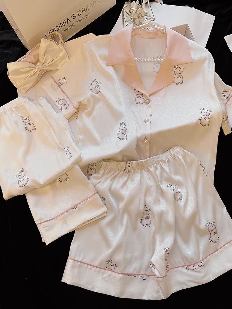 Пижамы из ледяного шелка для женщин, летние общежития, высококачественные большие размеры, домашняя одежда в стиле интернет-знаменитостей, шорты и брюки с короткими рукавами, комплект из трех предметов
