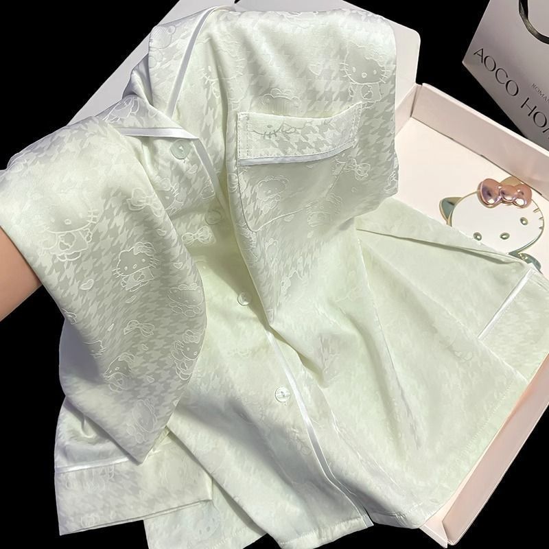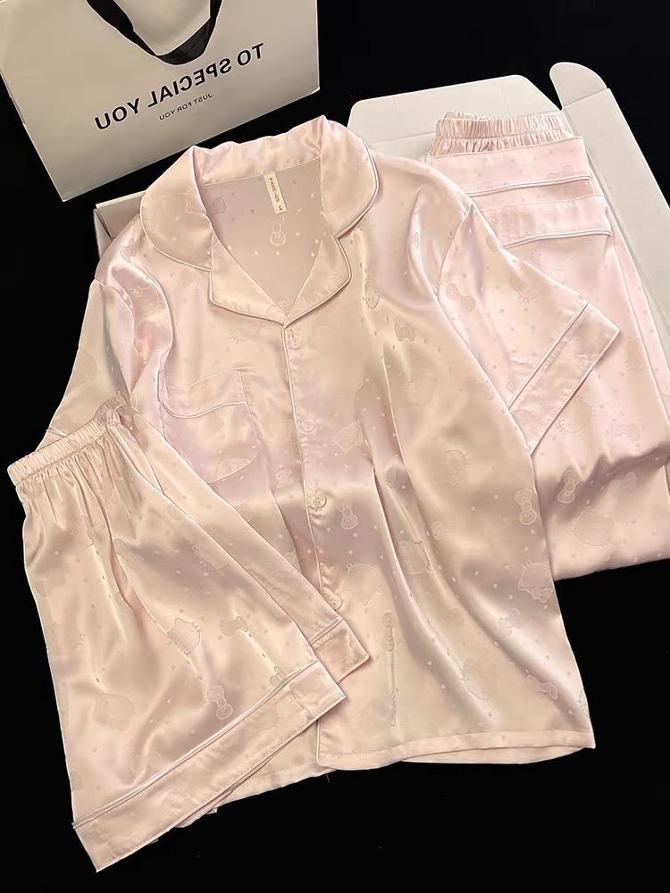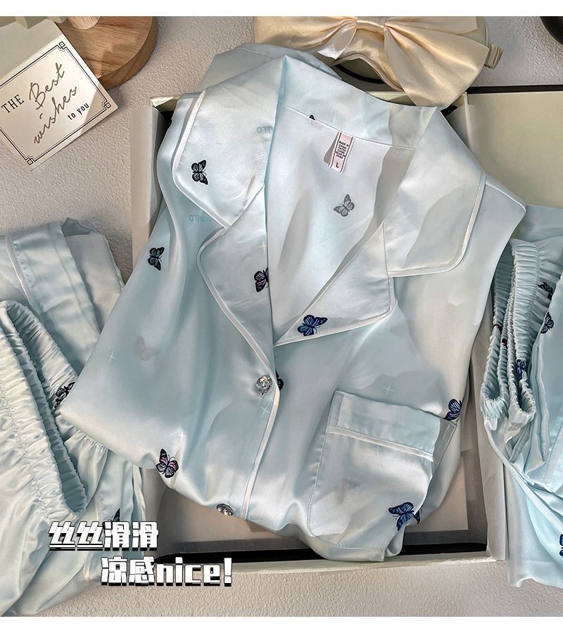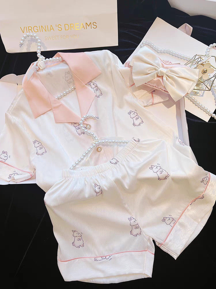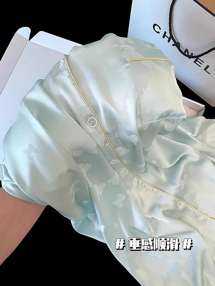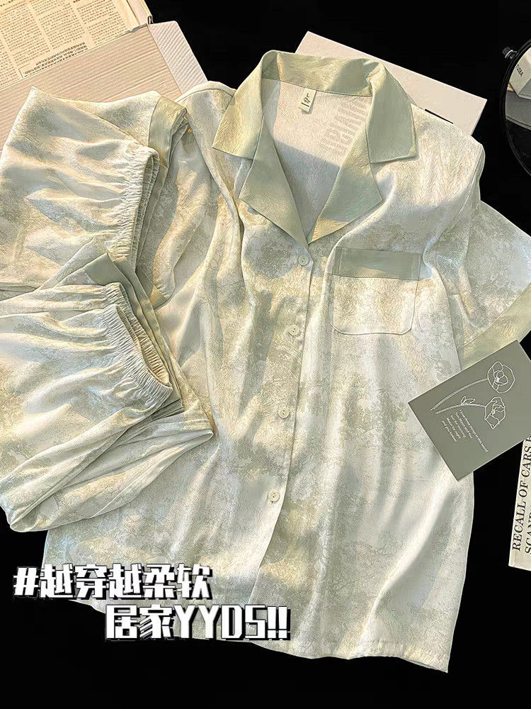 Пижамы из ледяного шелка для женщин, летние общежития, высококачественные большие размеры, домашняя одежда в стиле интернет-знаменитостей, шорты и брюки с короткими рукавами, комплект из трех предметов