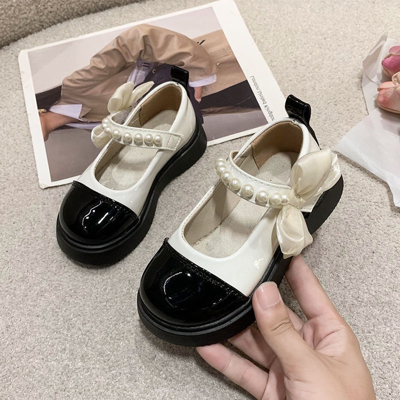 Детские кожаные туфли для девочек, весна-осень, новые черные, для выступлений, мягкая подошва, британский стиль, туфли принцессы