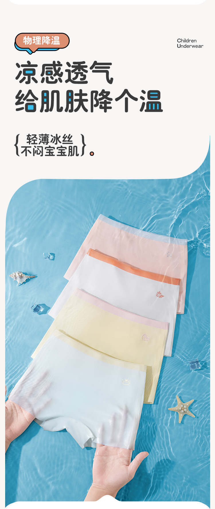 Новые оптовые трусы-боксеры для девочек, бесшовные, из ледяного шелка, летние, тонкие, дышащие, класса А, для детей постарше и малышей.