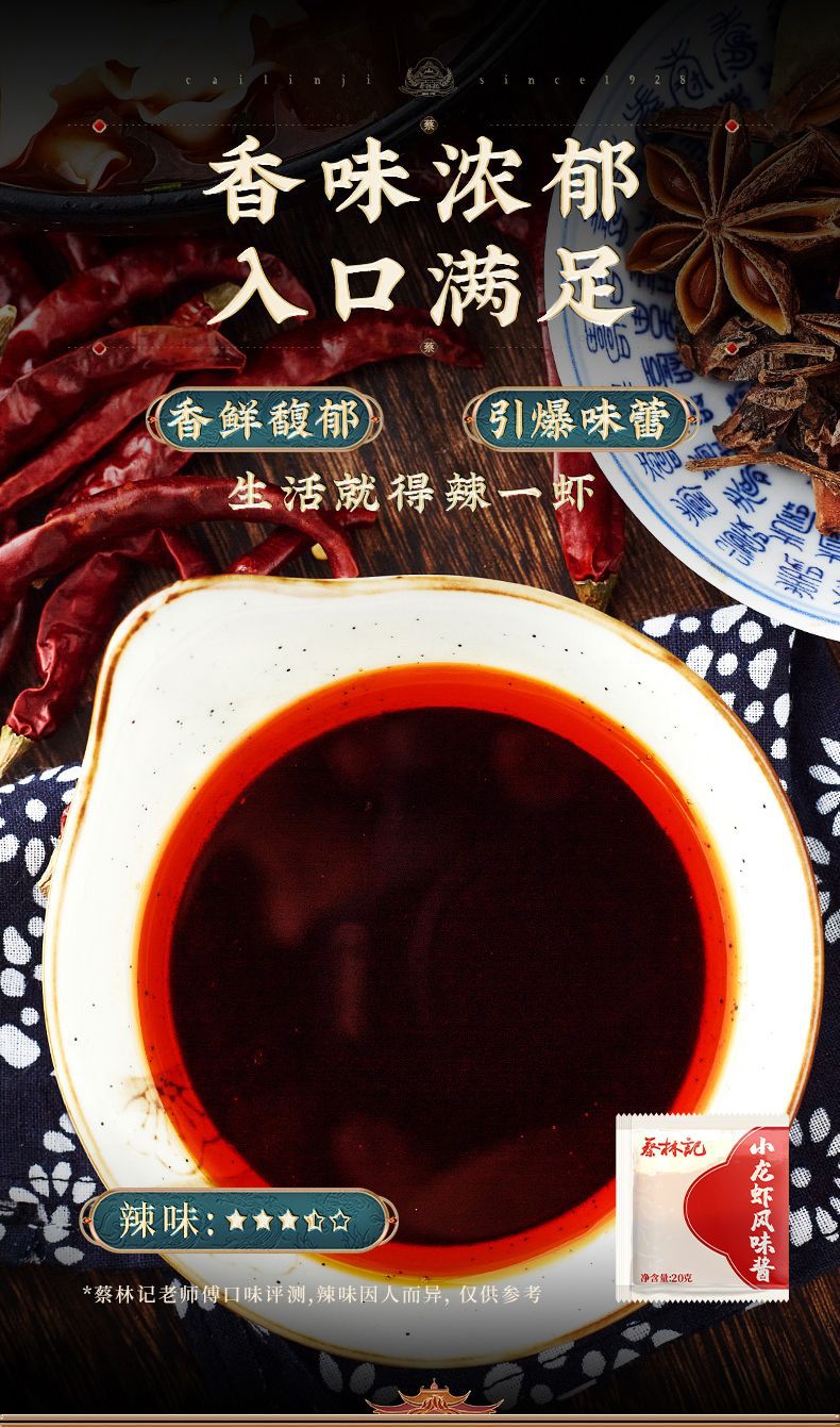 Пакет соуса для горячей сухой лапши Cai Lin Ji Wuhan с вкусом тушеной говядины, вкусом черной утины и приправой со вкусом раков в небольших пакетиках.