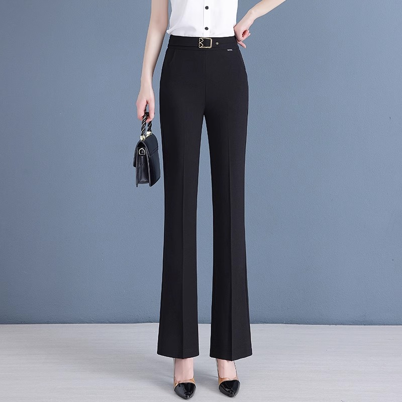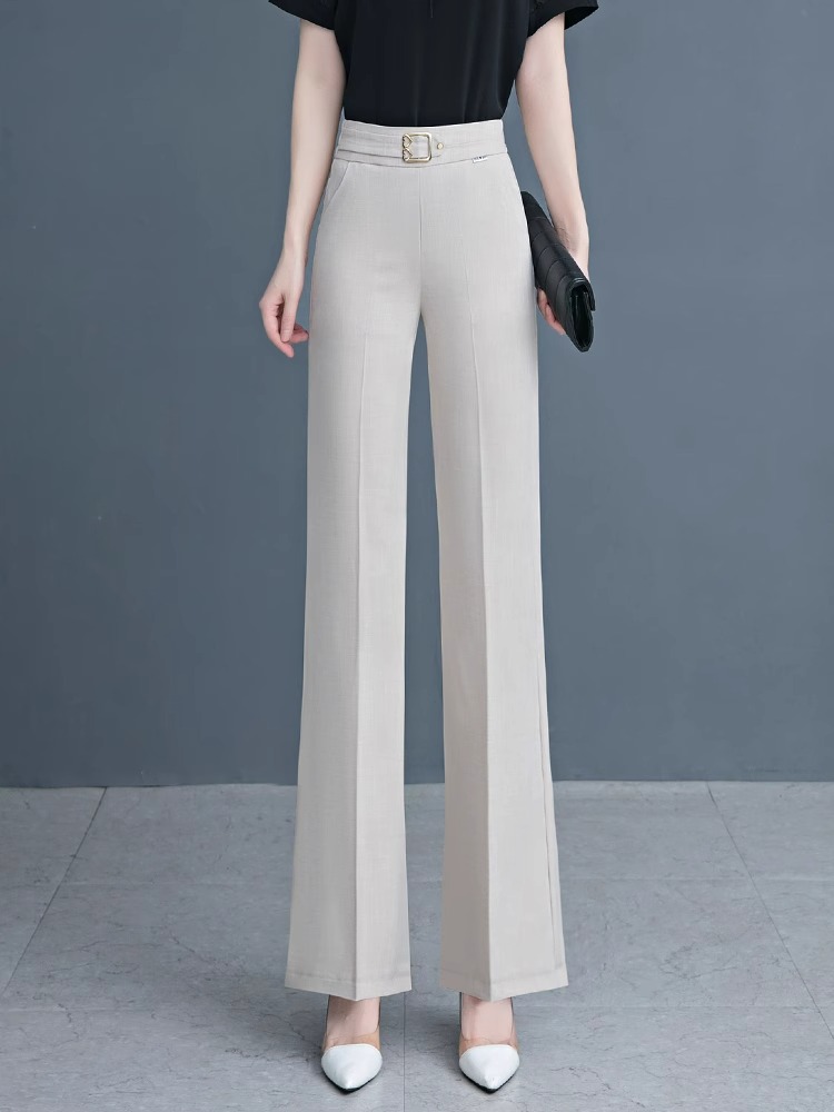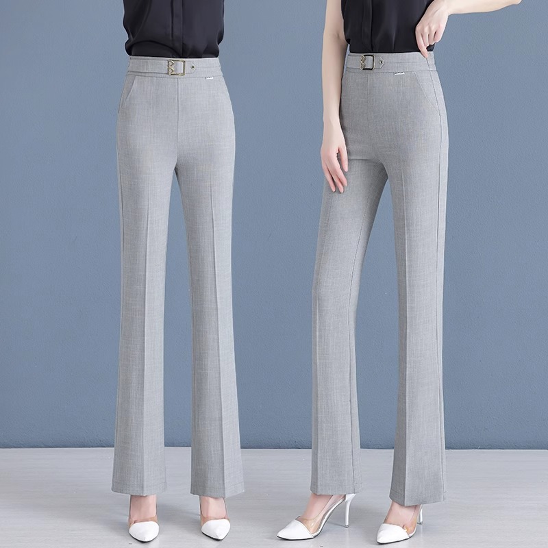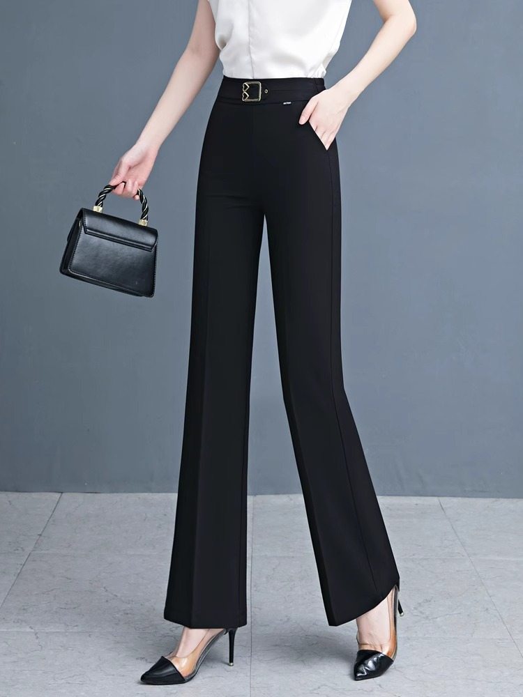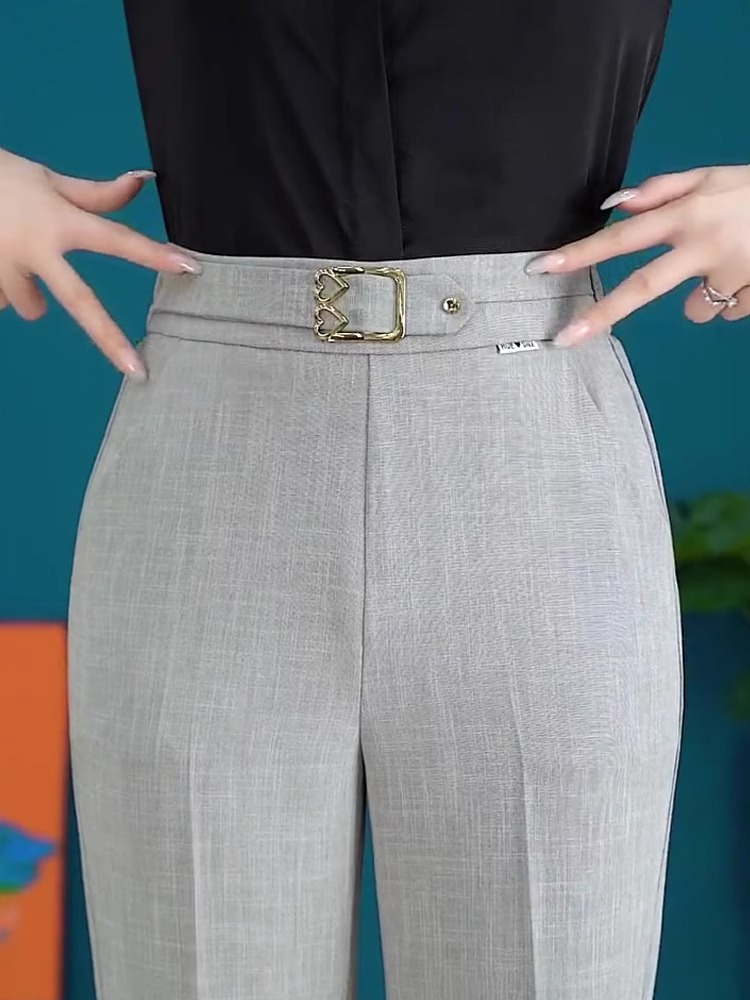 Брюки с микро-клеш, льняные брюки из ледяного шелка для женщин, новая мода лета 2025 года, тонкий стиль, стройнящий вид, высокая талия, для маленьких людей