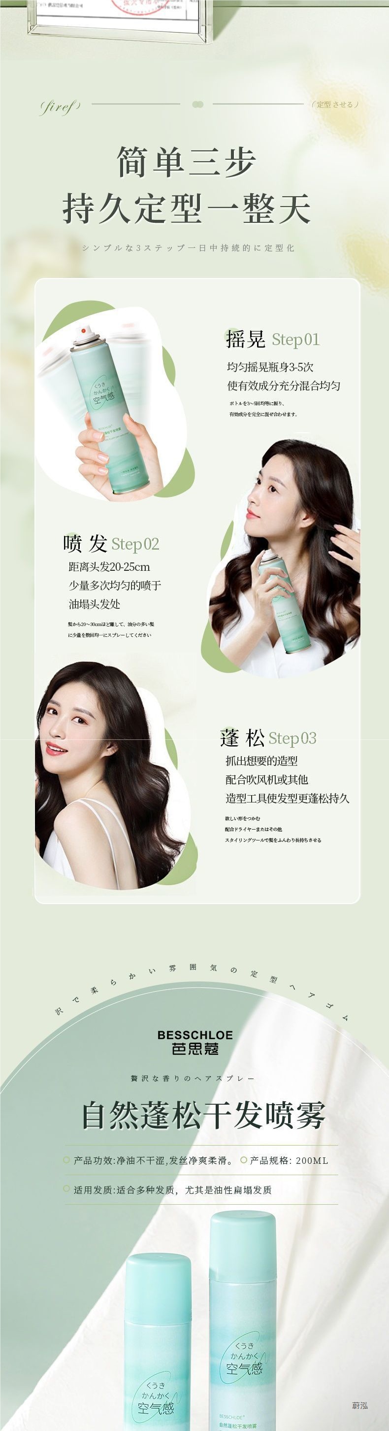 Спрей для сухих волос без смывания, для контроля жирности, пушистого ленивого тела, высокого черепа, новой челки.