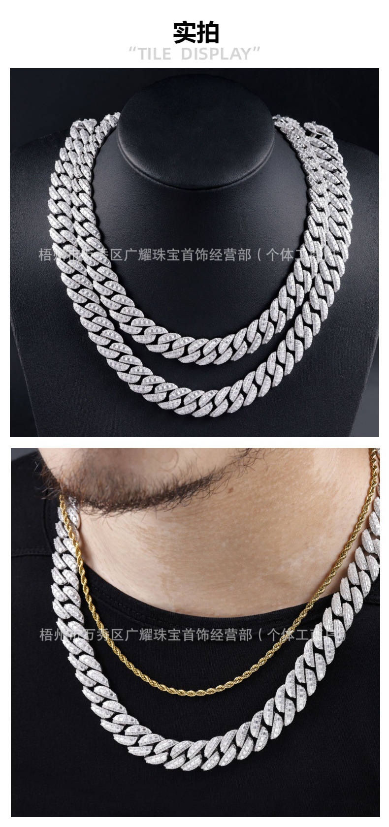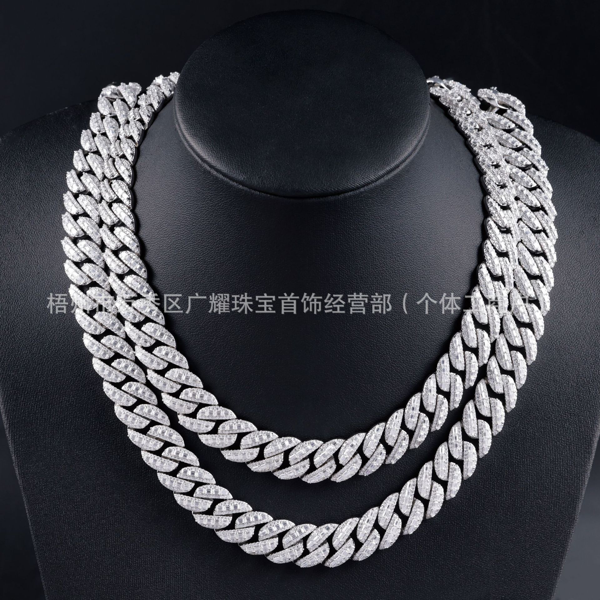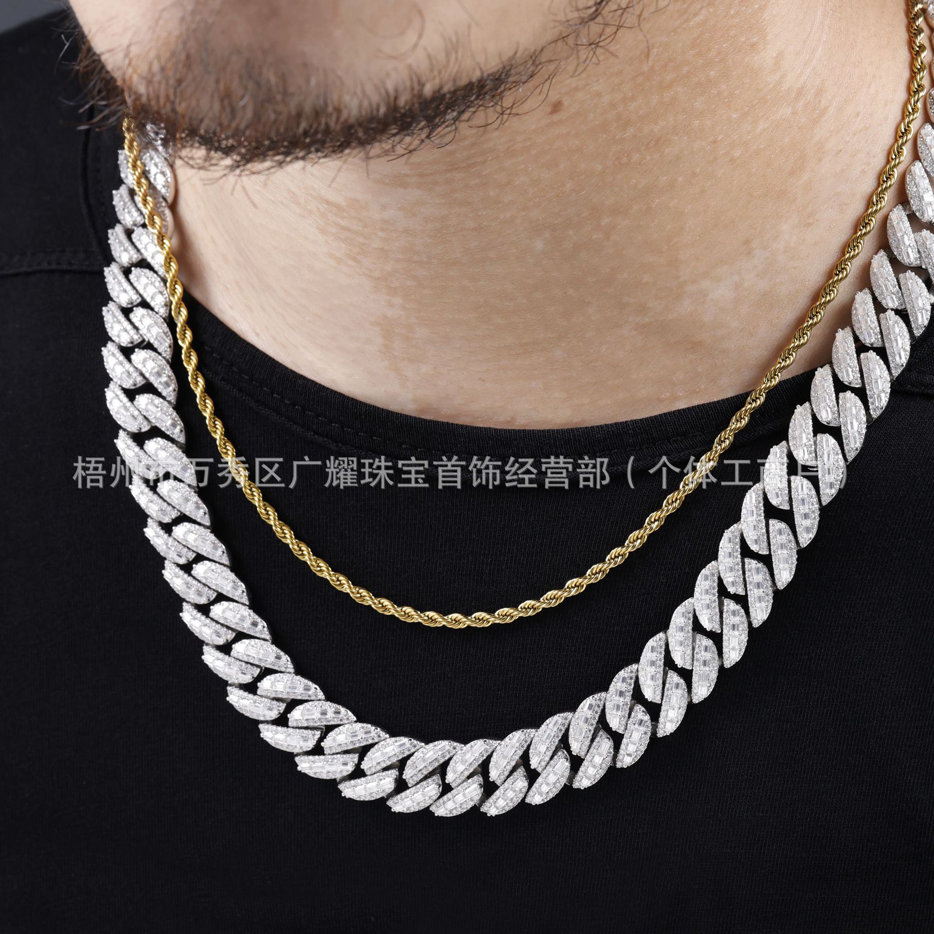 Мужской кубинский браслет-цепочка из серебра S925 с трапециевидными муассанитами цвета D, размер 15-20 мм, в европейском и американском стиле хип-хоп