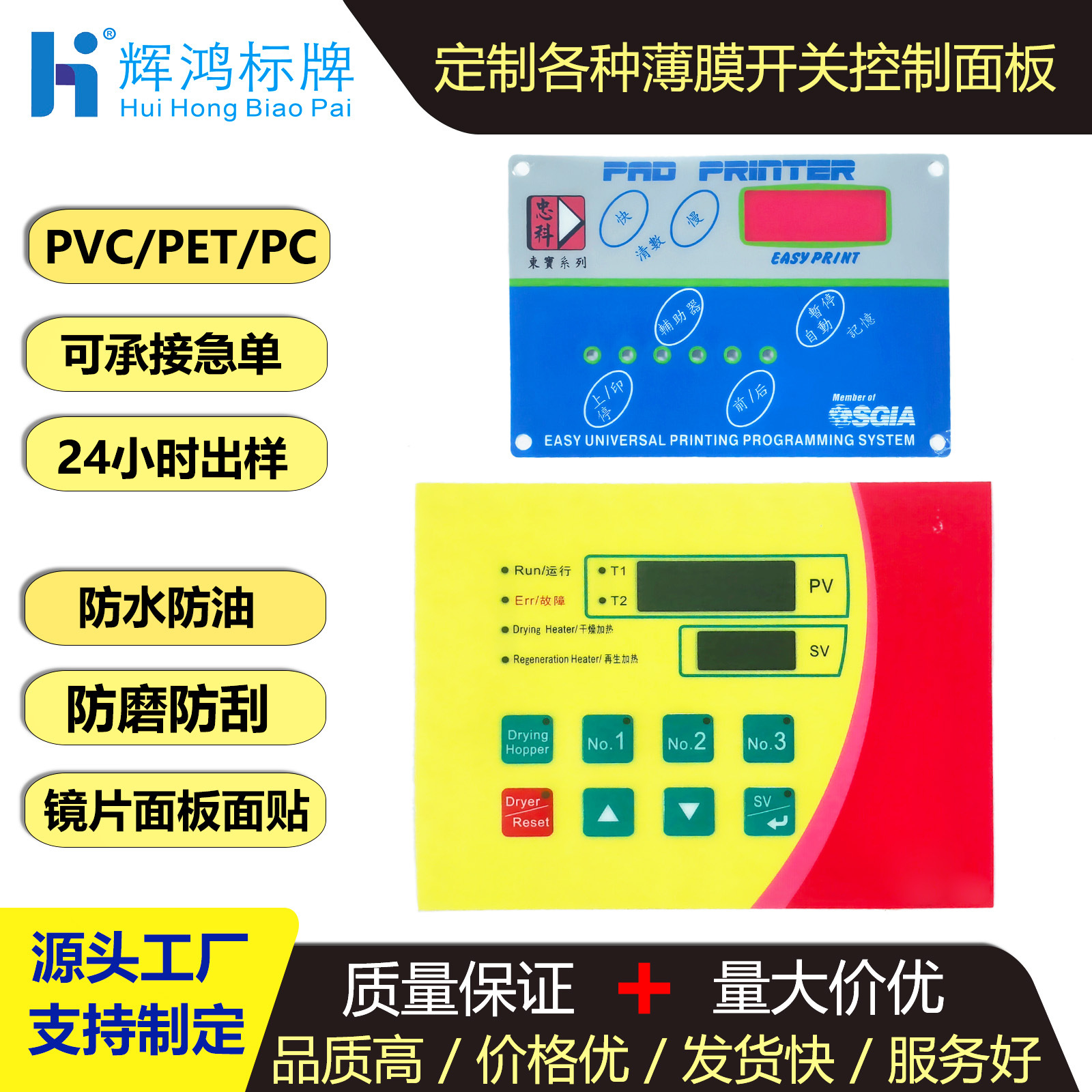 Акриловая контрольная поверхность с шелкографией, матовая панель из ПВХ, вывеска из ПЭТ, переключатель из ПК-пленки, кнопка, инструментальное оборудование
