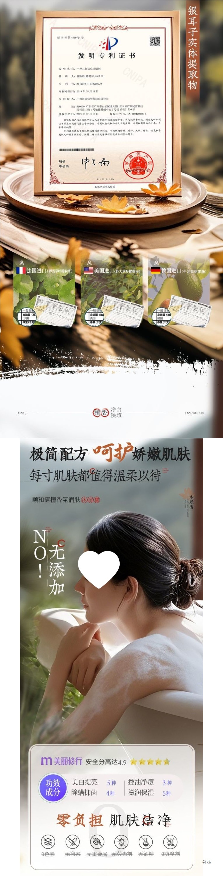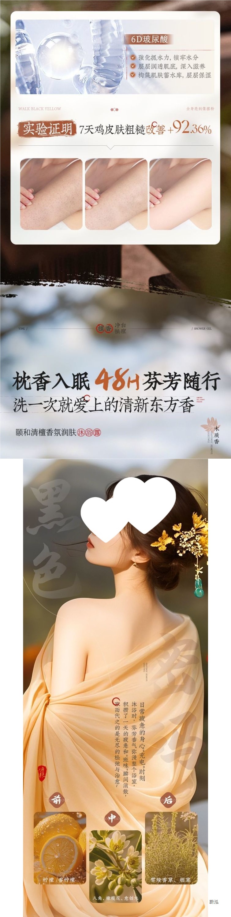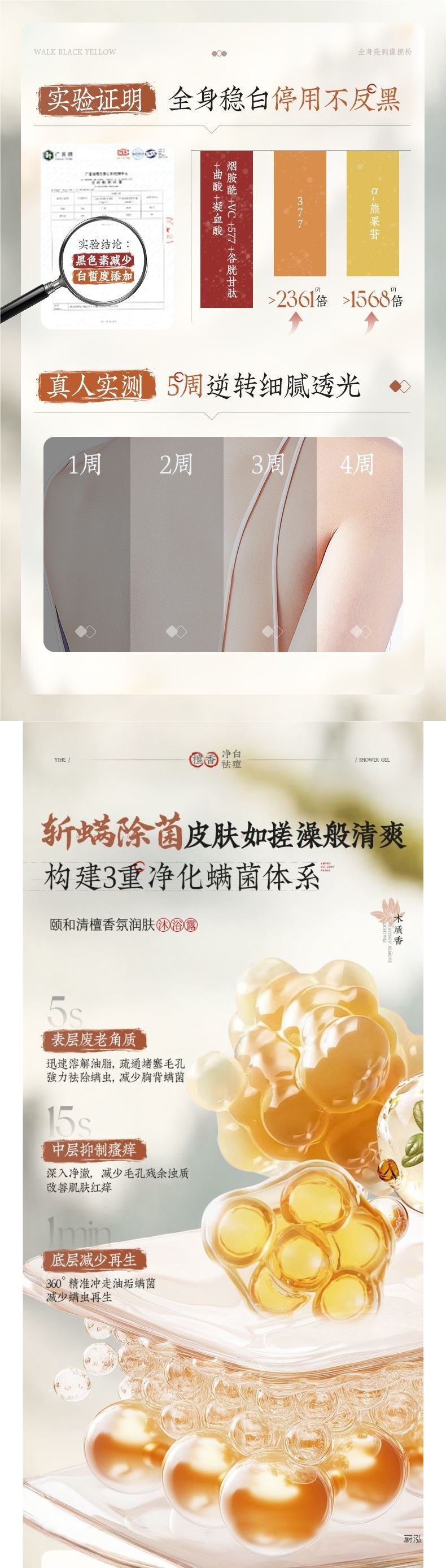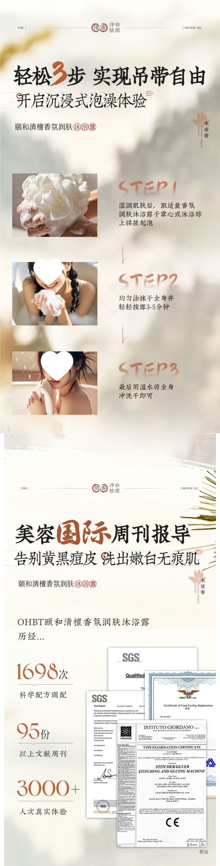 OHBT Yihetian Сандаловое дерево Гель для душа Отбеливание спины Борьба с прыщами Контроль жирности Увлажняющее очищение Освежающее увлажнение Нежный аромат Увлажнение