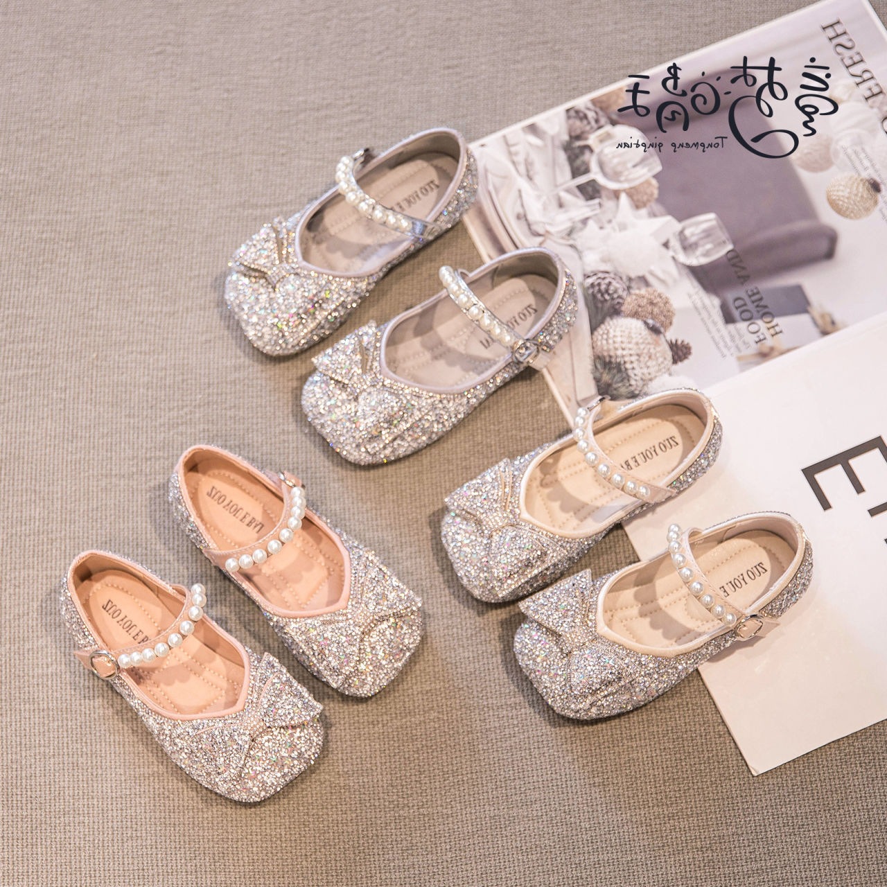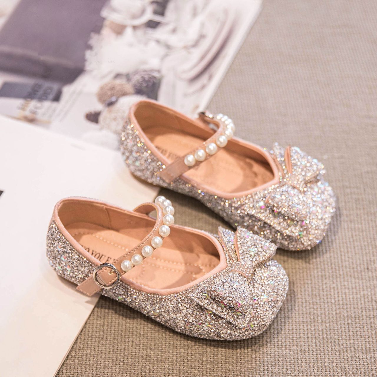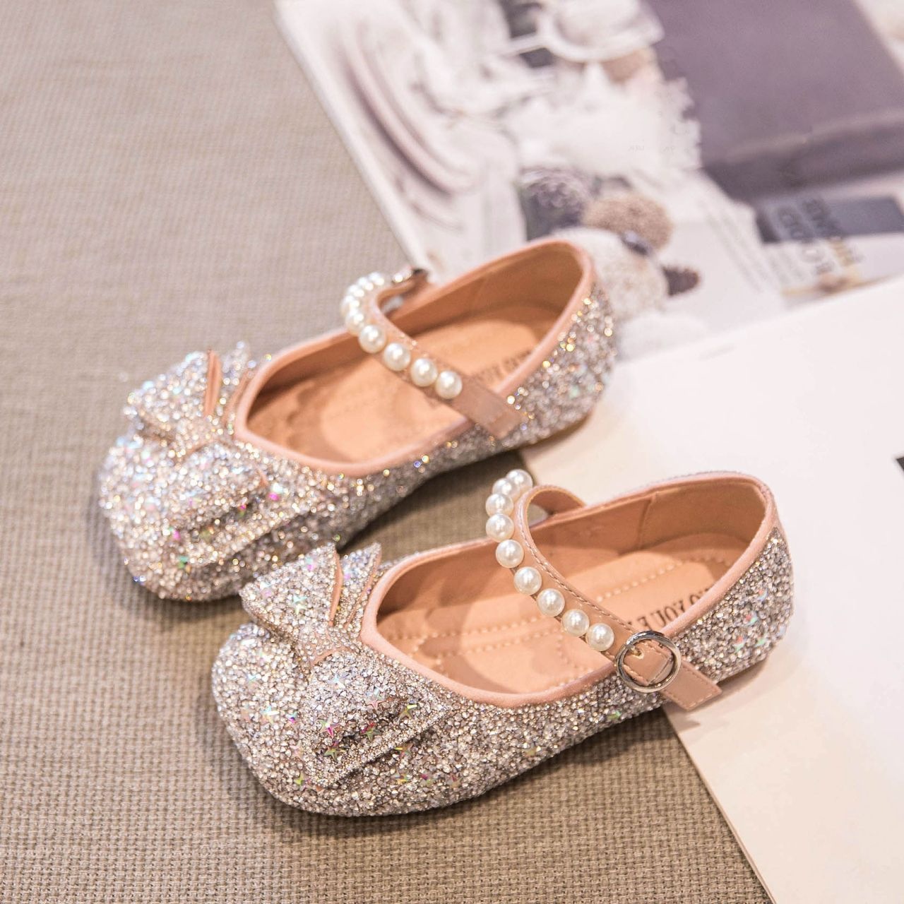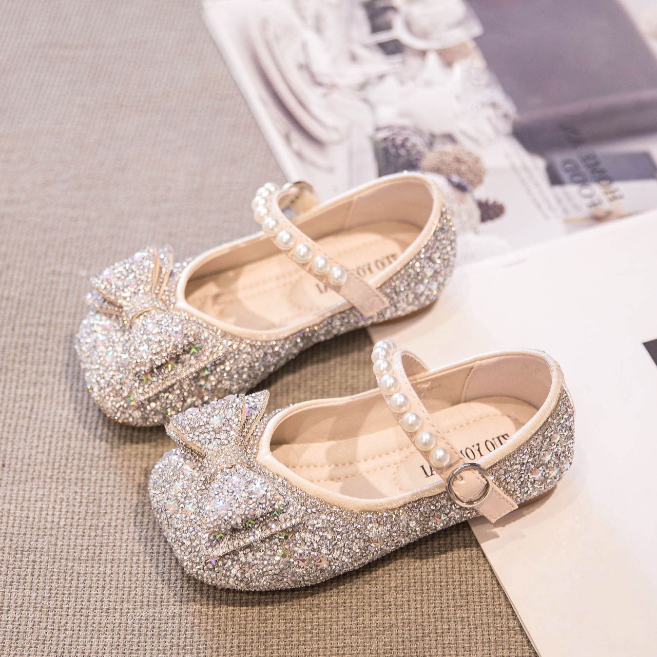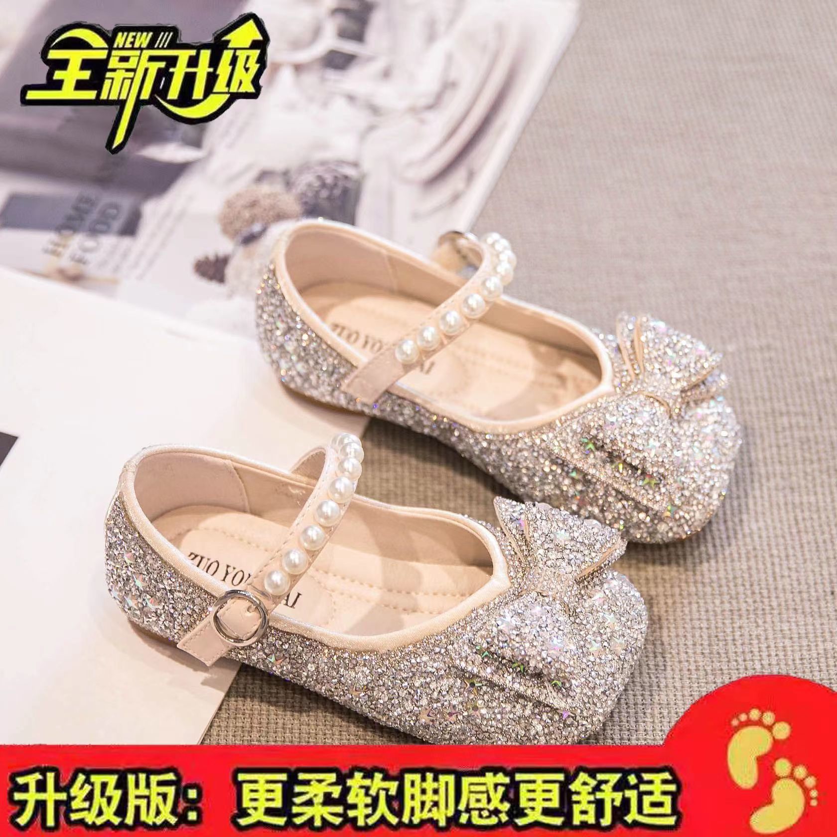 Новые весенне-осенние детские туфли для танцев, блестящие, в стиле принцессы, для маленьких девочек, с мягкой подошвой.