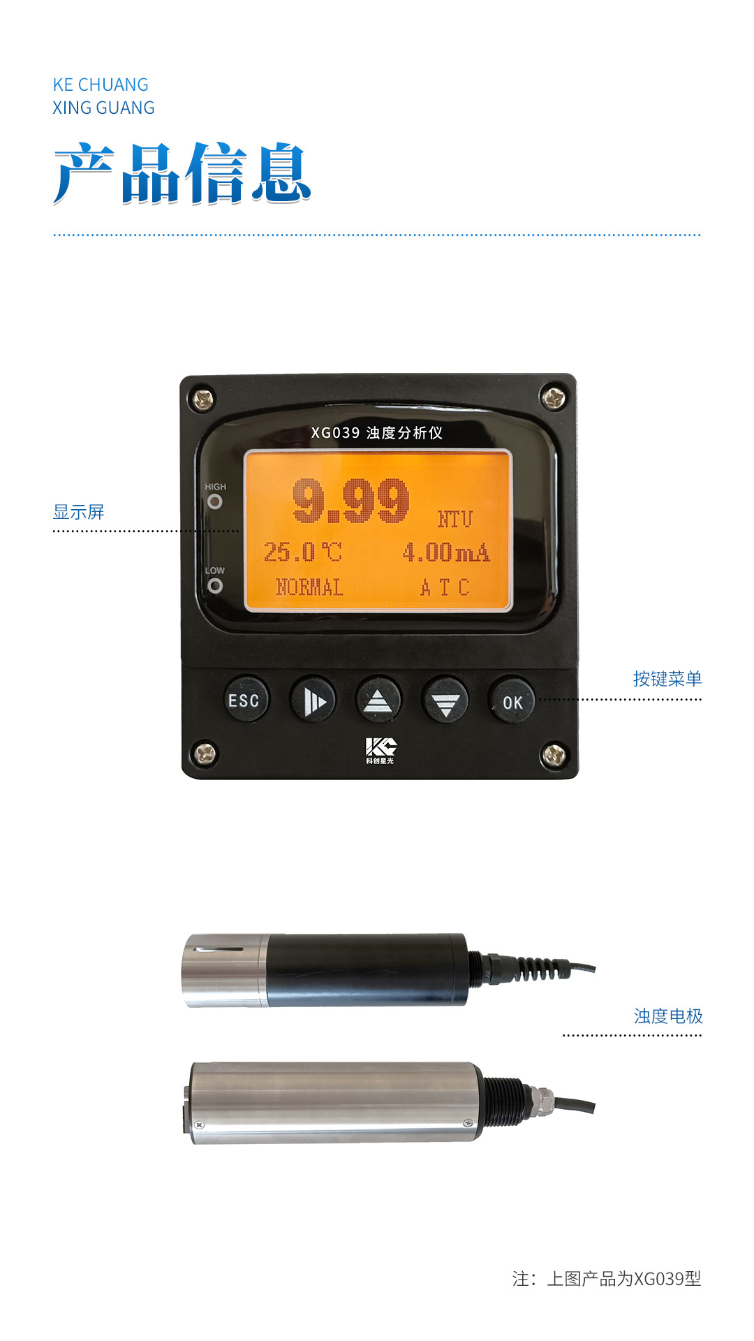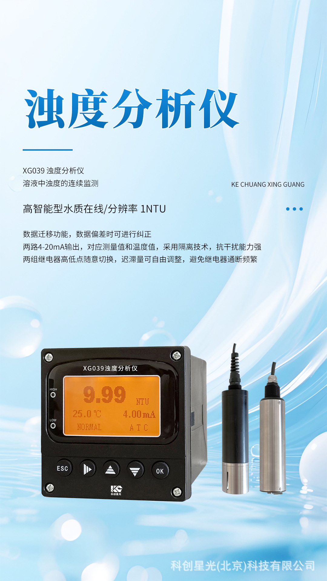 XG039 浊度分析仪是我公司新一代高智能型水质在线浊度分析仪,可广泛应用于电力、化工、冶金、环保、制药、半导体和自来水等行业溶液中浊度的连续监测。