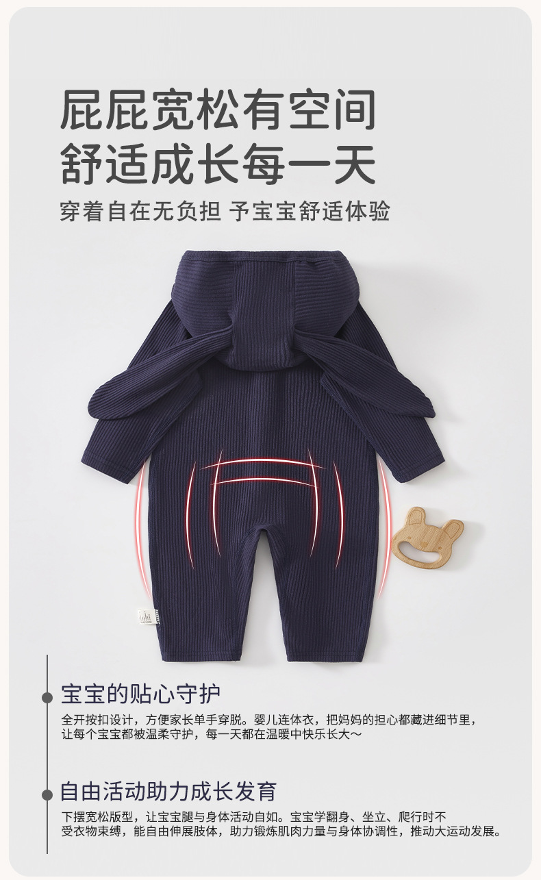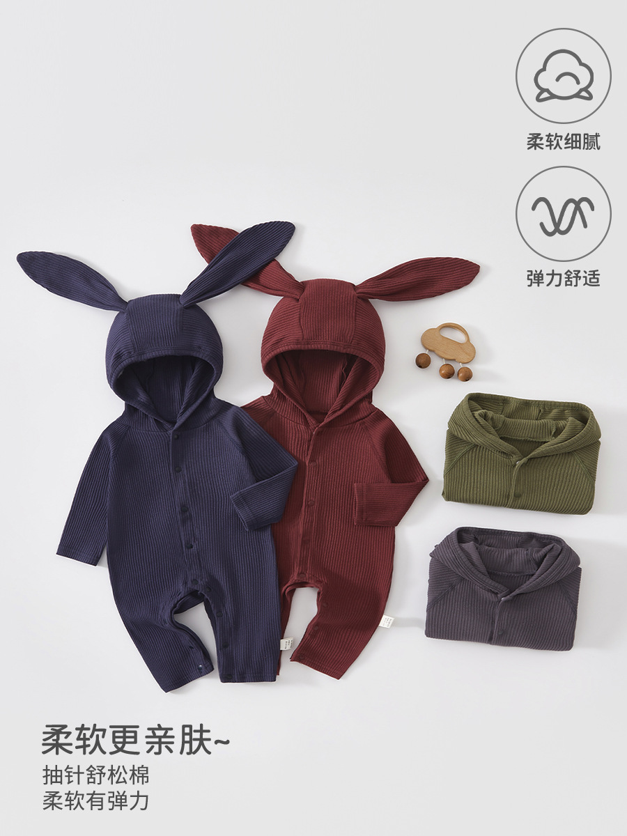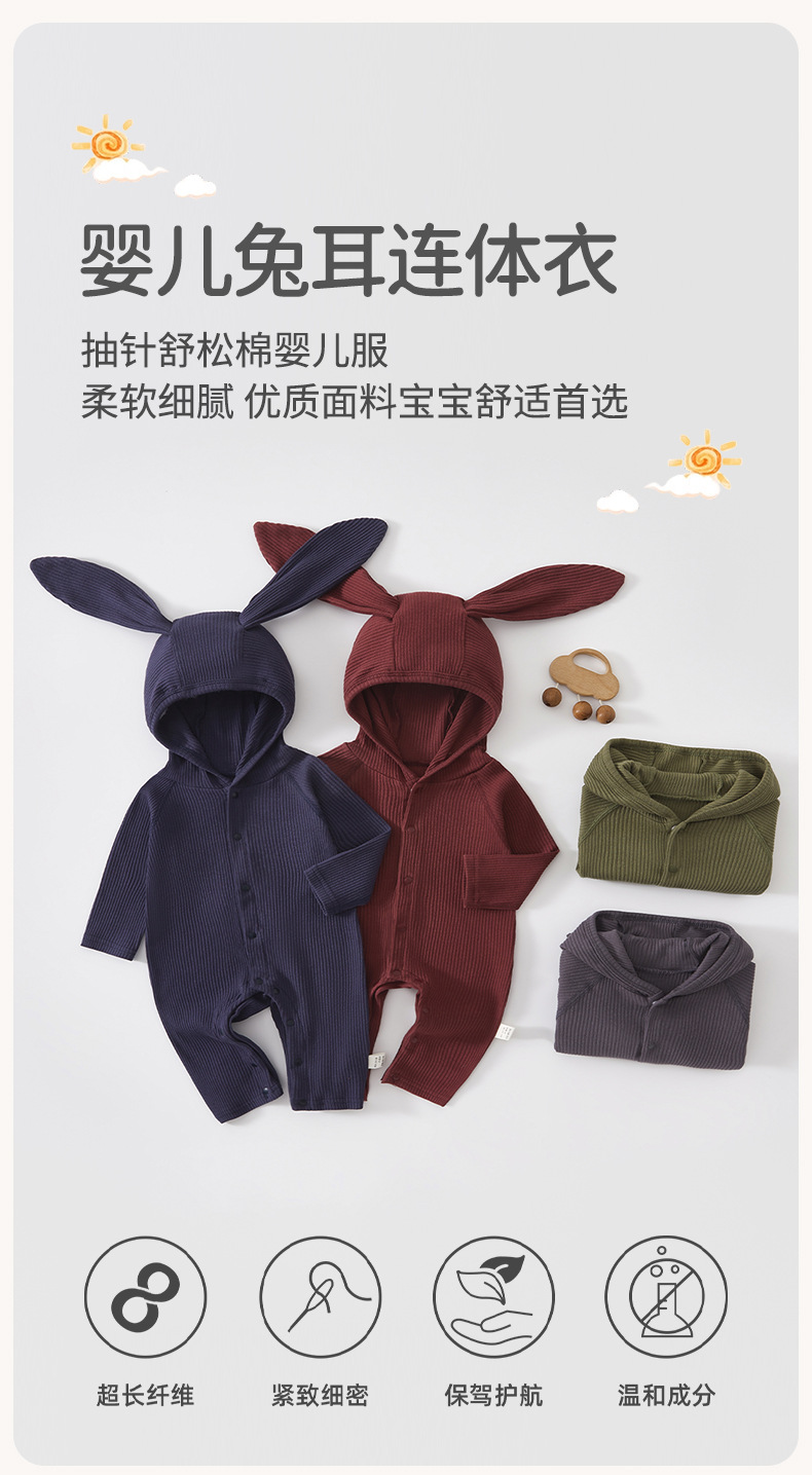 Детский комбинезон для весны и осени, с капюшоном и ушками кролика, бесшовный, для прогулок, детская одежда Anyang.