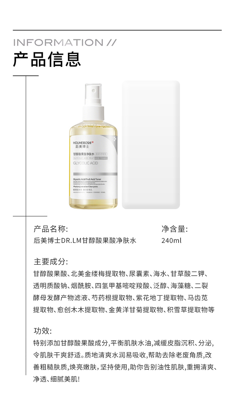 Dr. Houmei Очищающая вода с гликолевой кислотой 240 мл мягко увлажняет и улучшает закрытый прыщ.