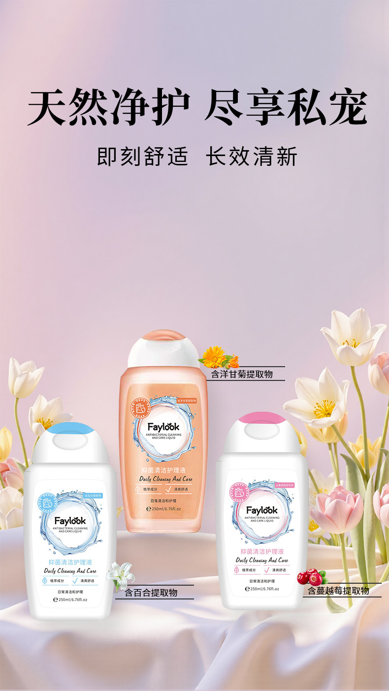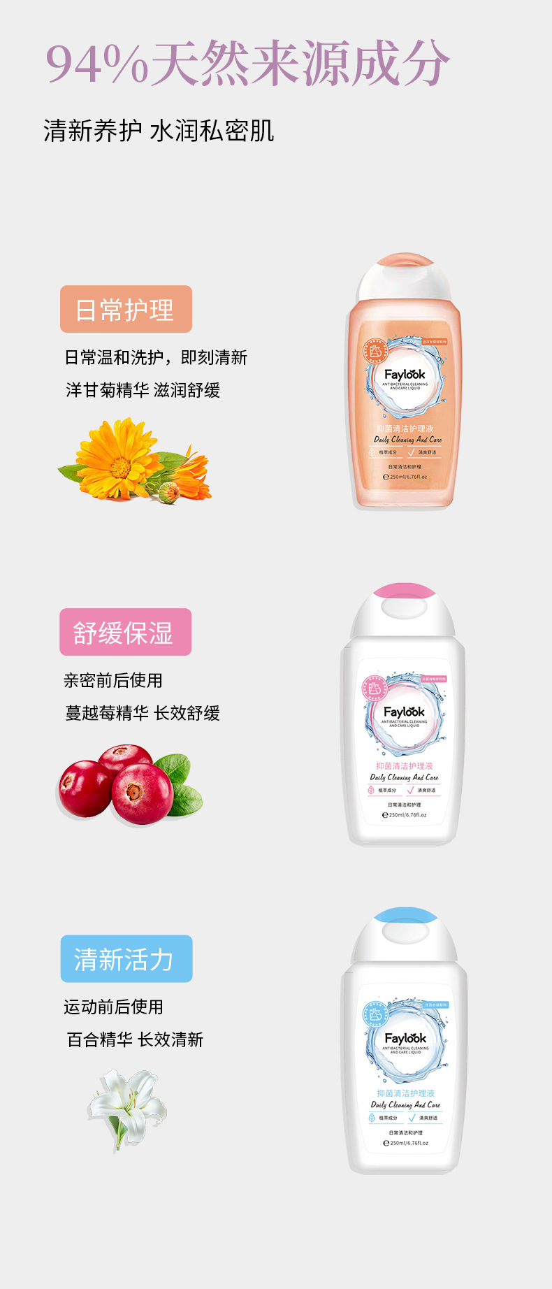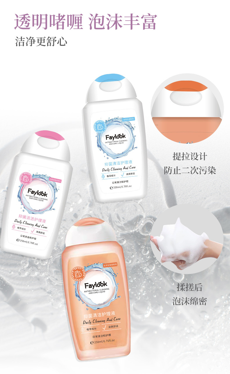 Жидкость для умывания и ухода за интимными зонами FAYLOOK, антибактериальная и противозудная, для ежедневного ухода, 250 мл, оригинальный продукт.