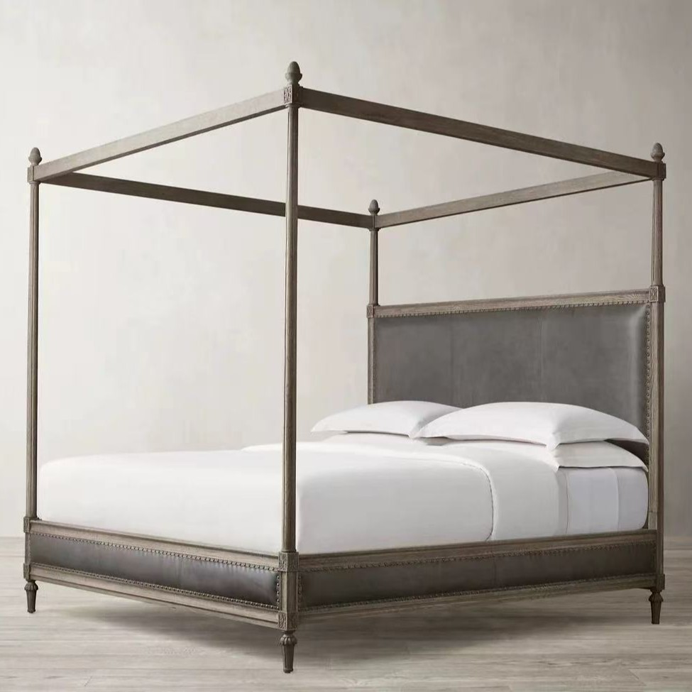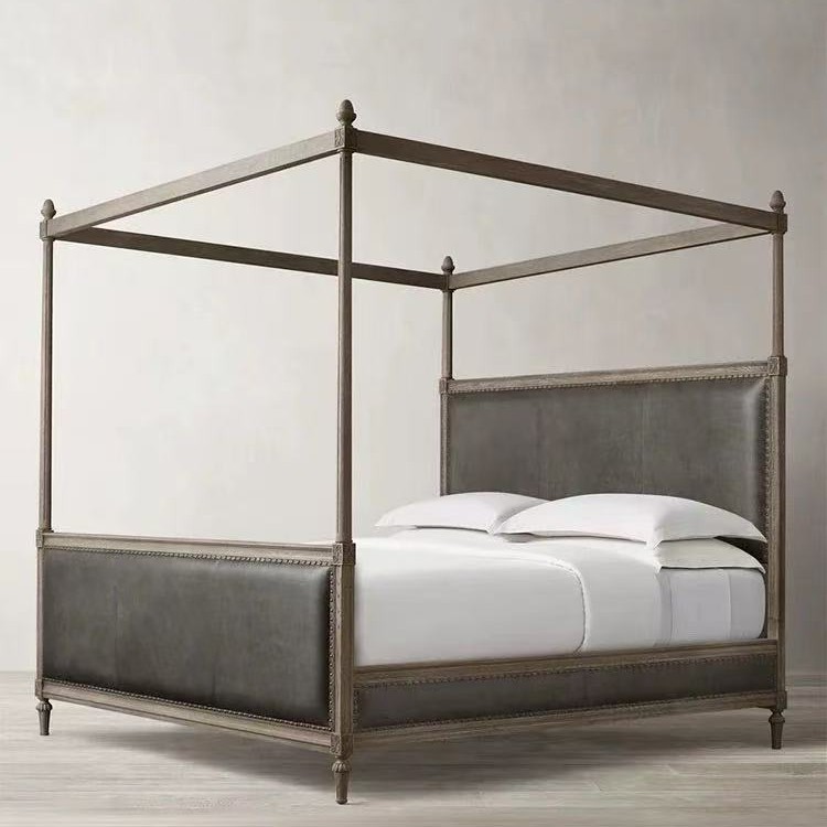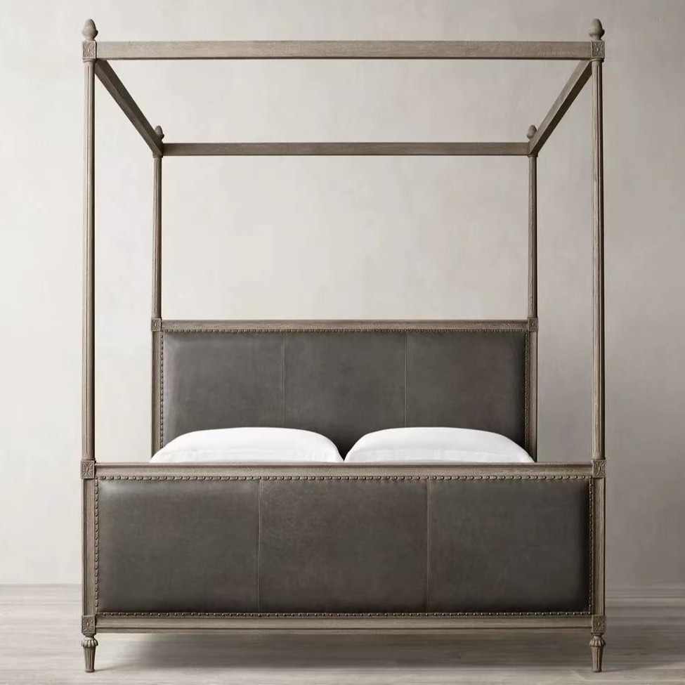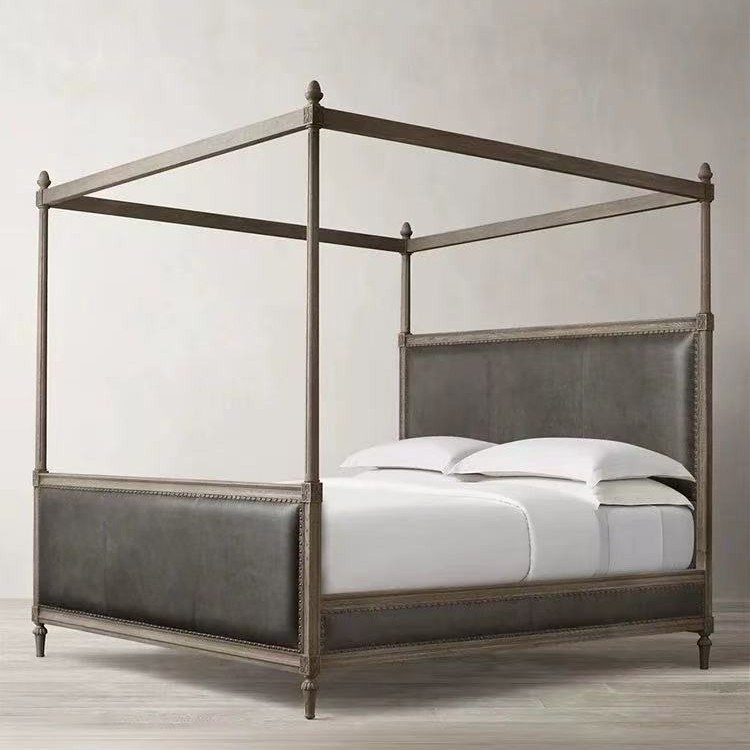 Американская деревенская кровать с каркасом из цельного дерева, французская ретро-кровать с четырьмя стойками, двуспальная кровать, высококачественная вилла, кожаная кровать с каркасом