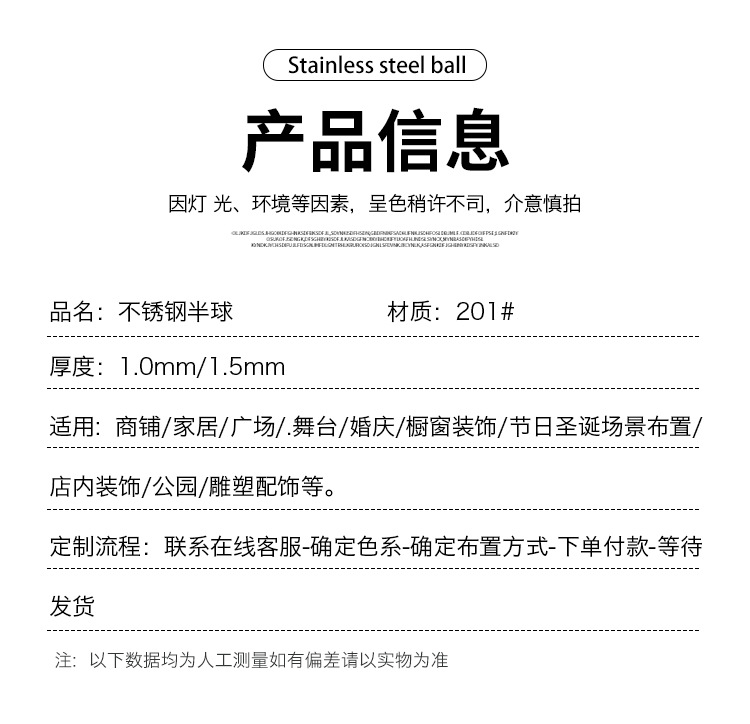 201 толстая трубка 1,0, крышка трубки, полукруглый шарик из нержавеющей стали, круглая головка трубки, уплотнительный шарик, половина шара 16 мм-1000 мм