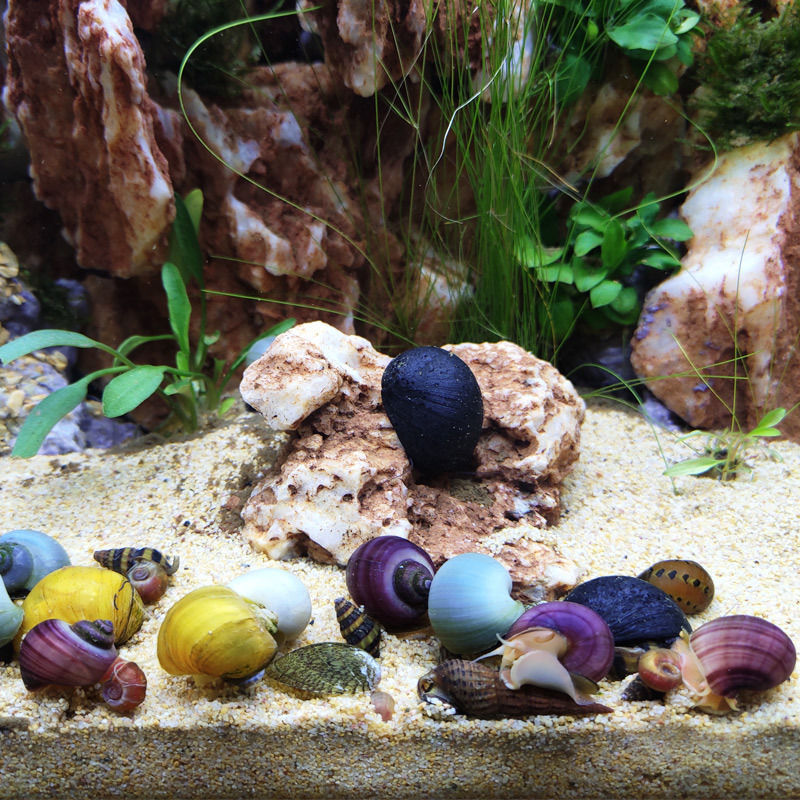 Декоративные улитки, пресноводные улитки, улитки для удаления водорослей, малазийские черные алмазные улитки, золотые убийцы в военных шляпах, зебровые улитки.