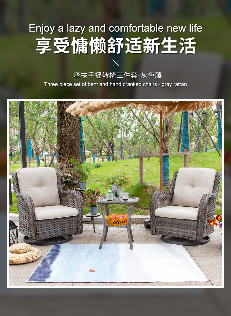 Уличный комплект мебели из ротанга: диван, стол и стулья, кресло-качалка, поворотный диван, комплект для отдыха на открытом воздухе, набор из трех предметов с поворотным креслом