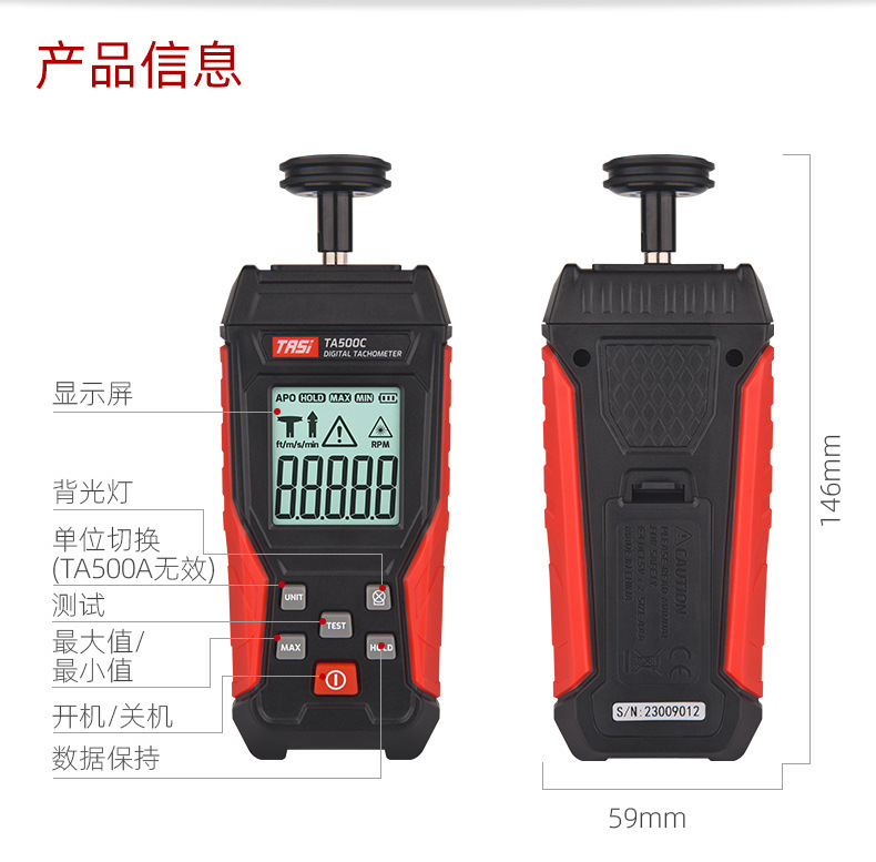 Лазерный тахометр Teans TA500C, контактный тахометр с цифровым дисплеем, тахометр скорости, линейный тахометр скорости