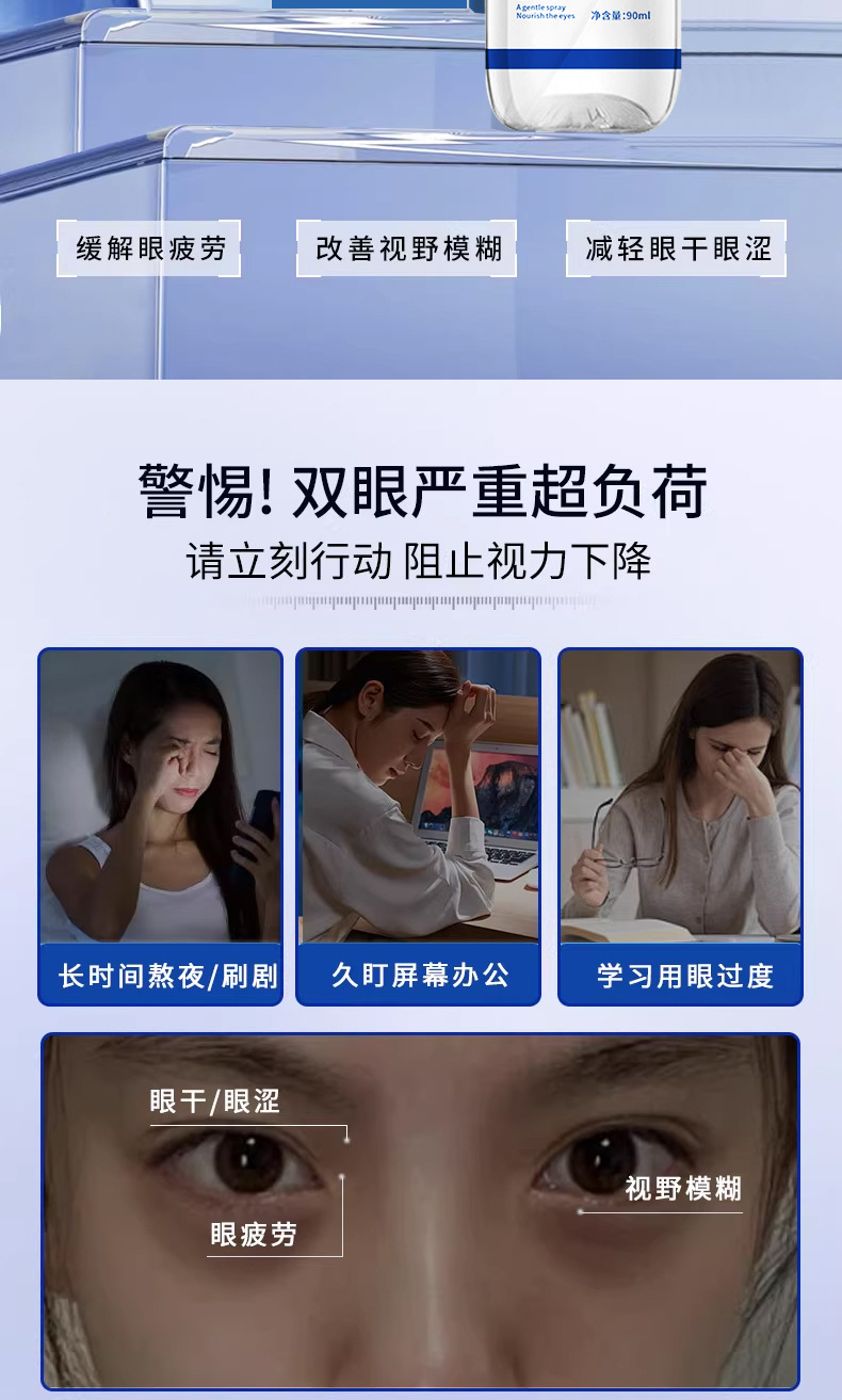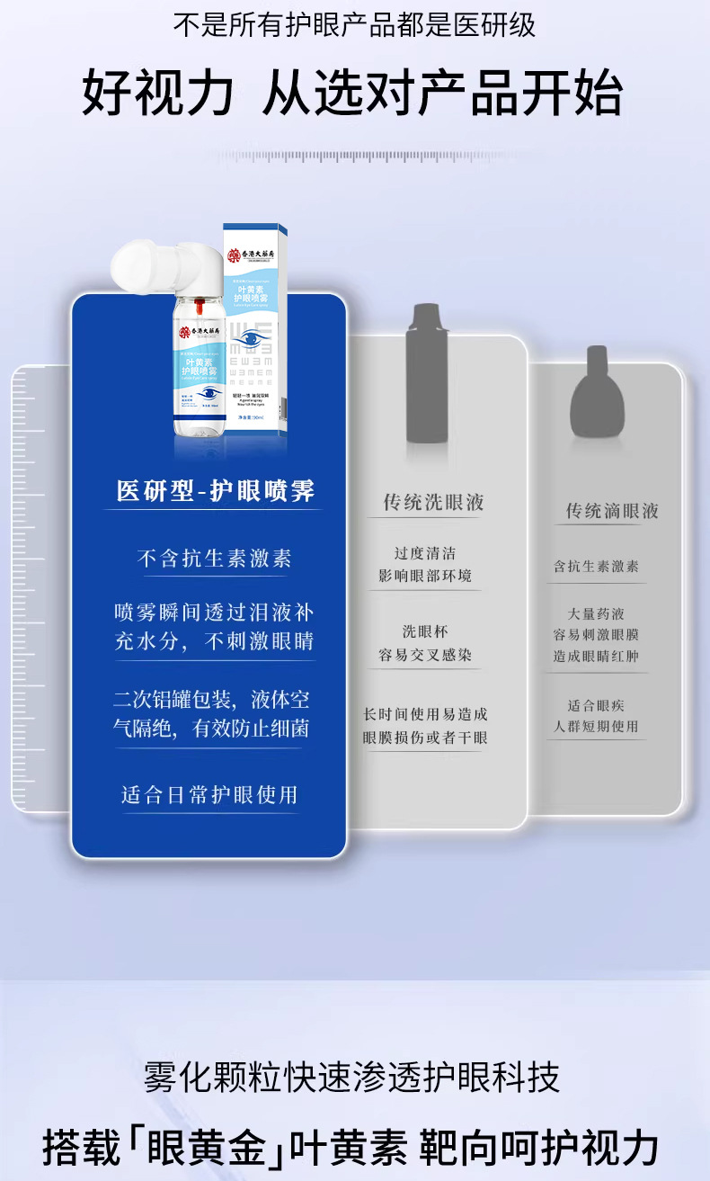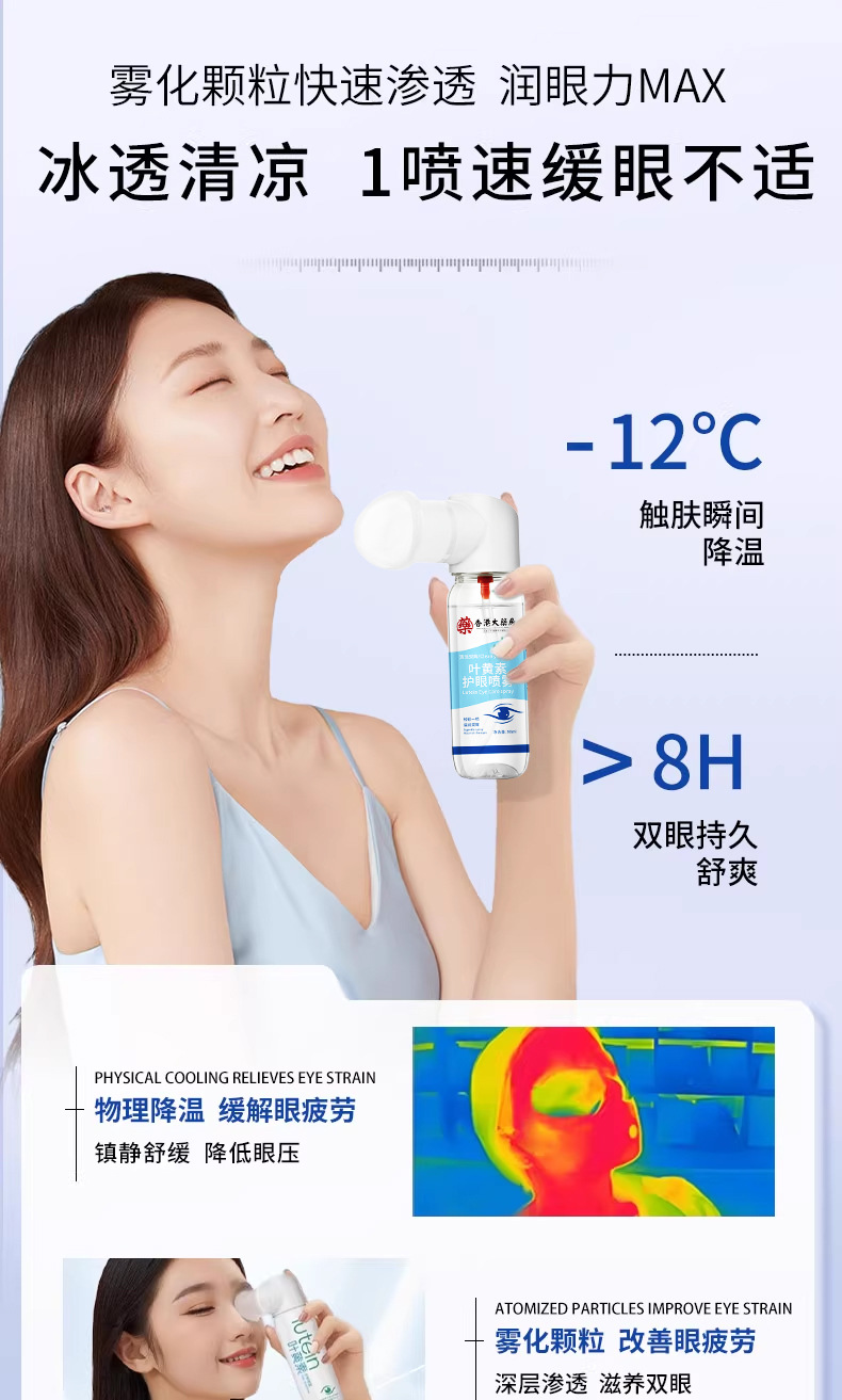 Гонконгский аптечный спрей для защиты глаз с лютеином очищает глаза, улучшает зрение, предотвращает усталость, расплывчатость зрения, увлажняет и успокаивает