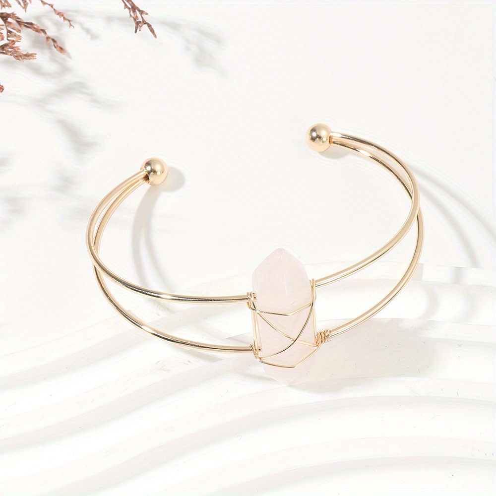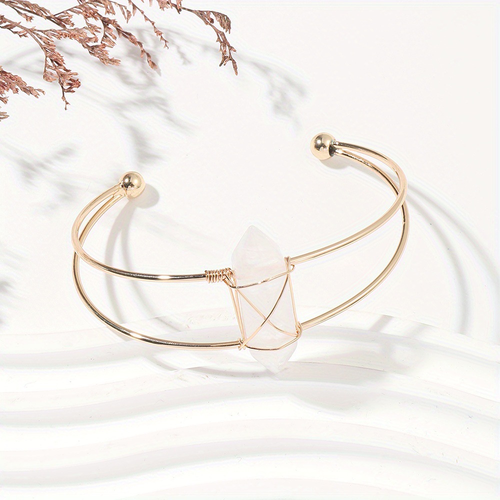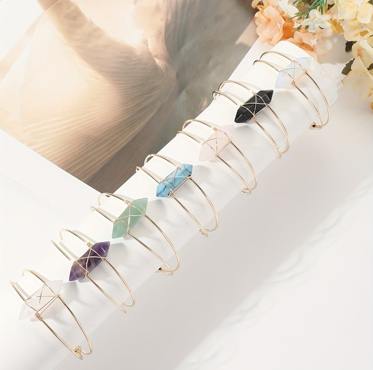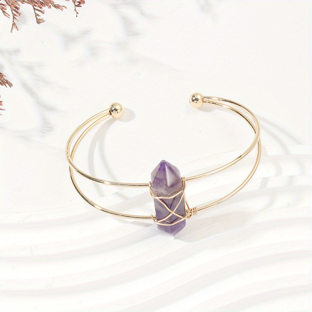 Ювелирные изделия Zhuhang, популярный трансграничный браслет из натурального кристалла, шестиугольный браслет-колонна, аметист, белый кристалл, открытый круглый браслет, оптовая продажа