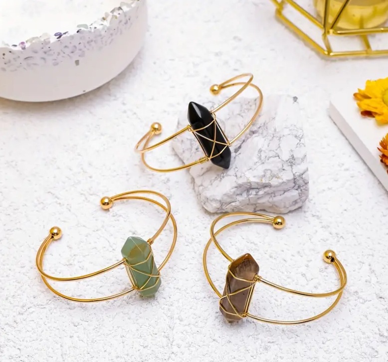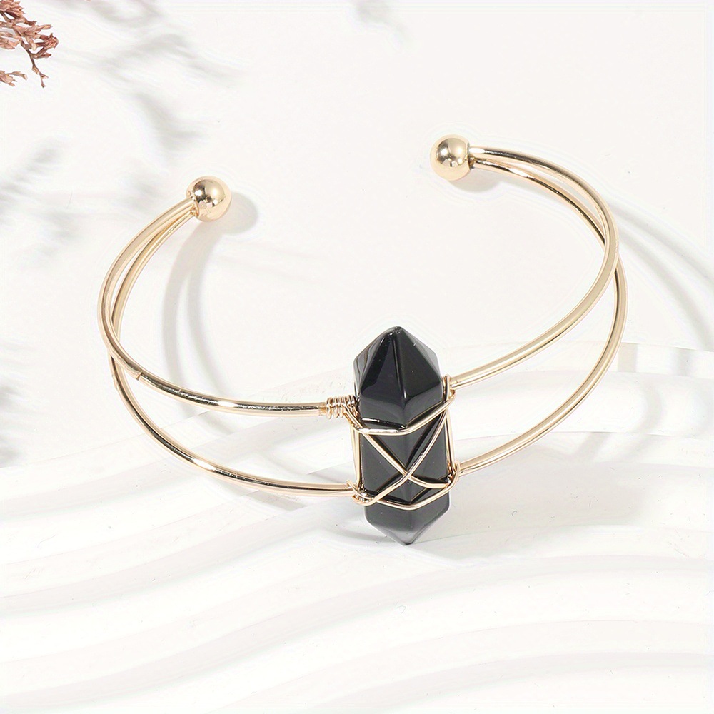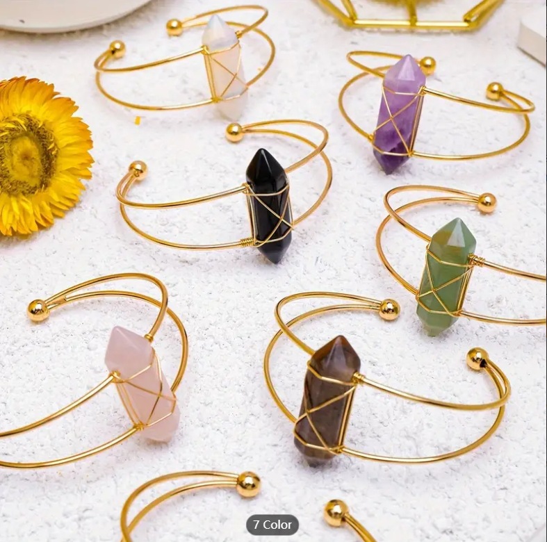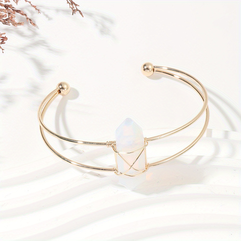 Ювелирные изделия Zhuhang, популярный трансграничный браслет из натурального кристалла, шестиугольный браслет-колонна, аметист, белый кристалл, открытый круглый браслет, оптовая продажа