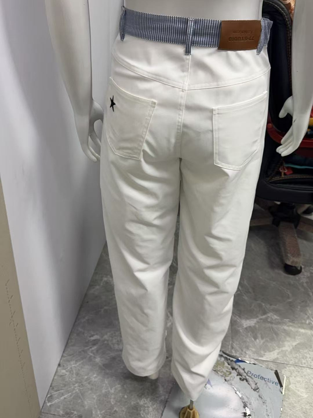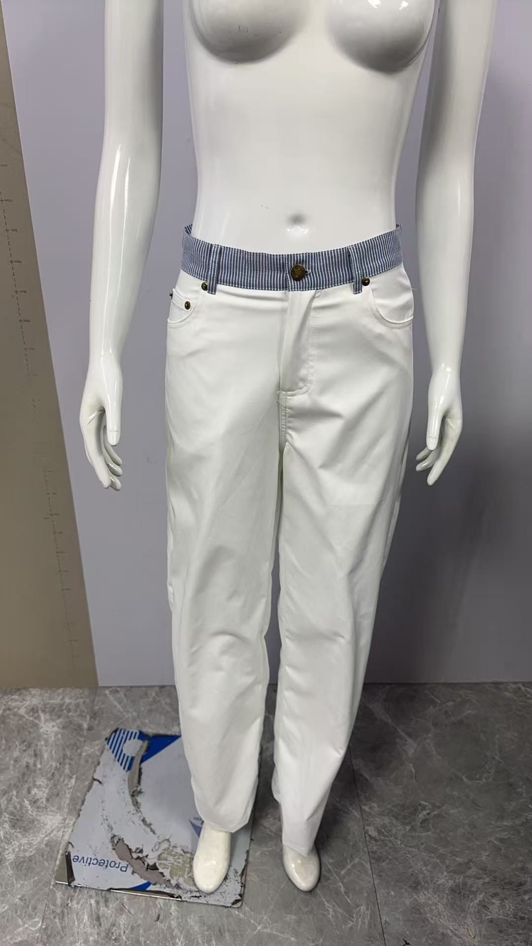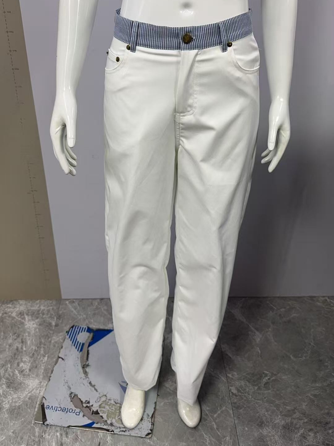 2025 Весна/Лето Новый стиль Прямые брюки с контрастной цветной лентой и декором Элегантные прямые джинсы.