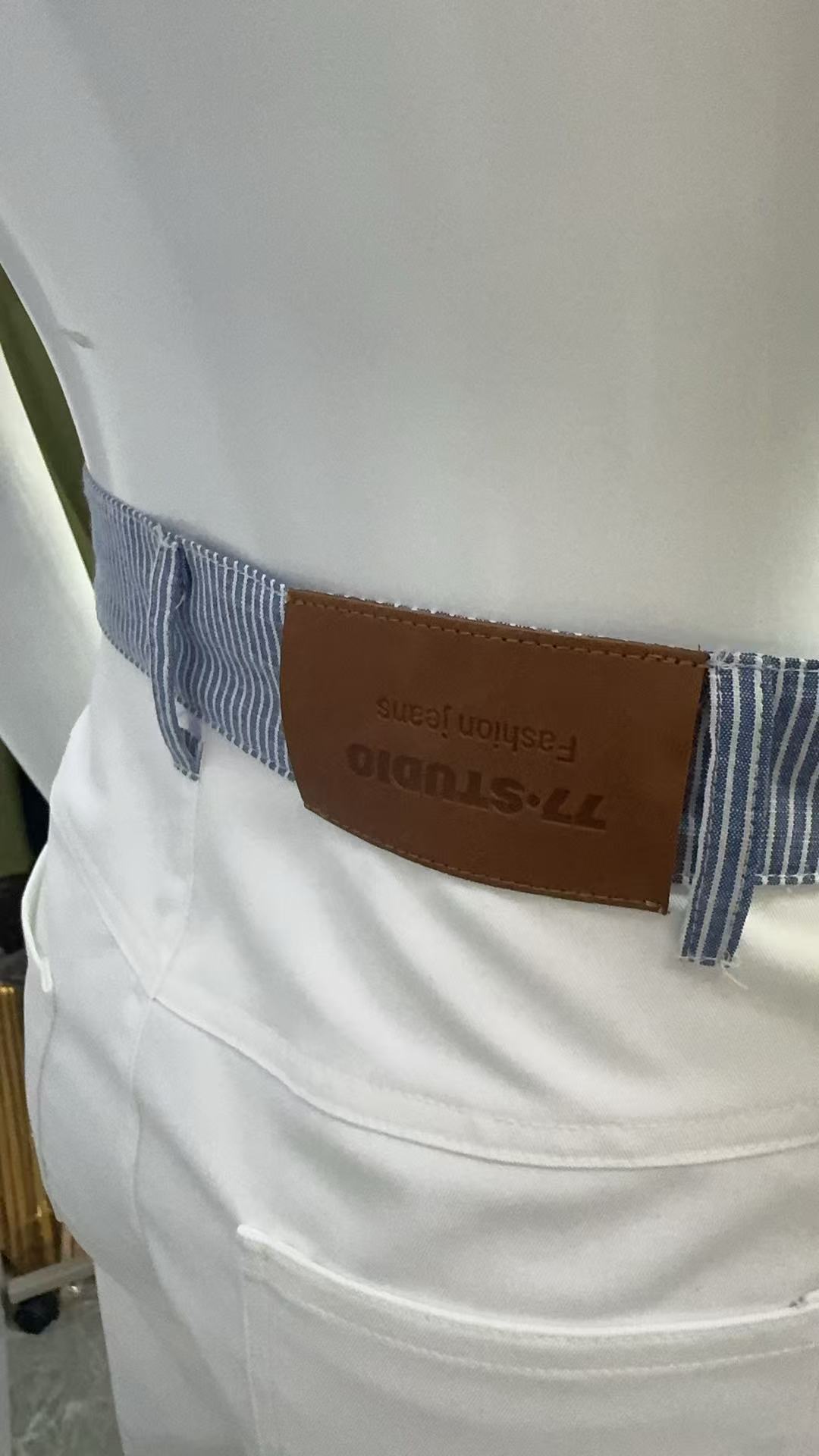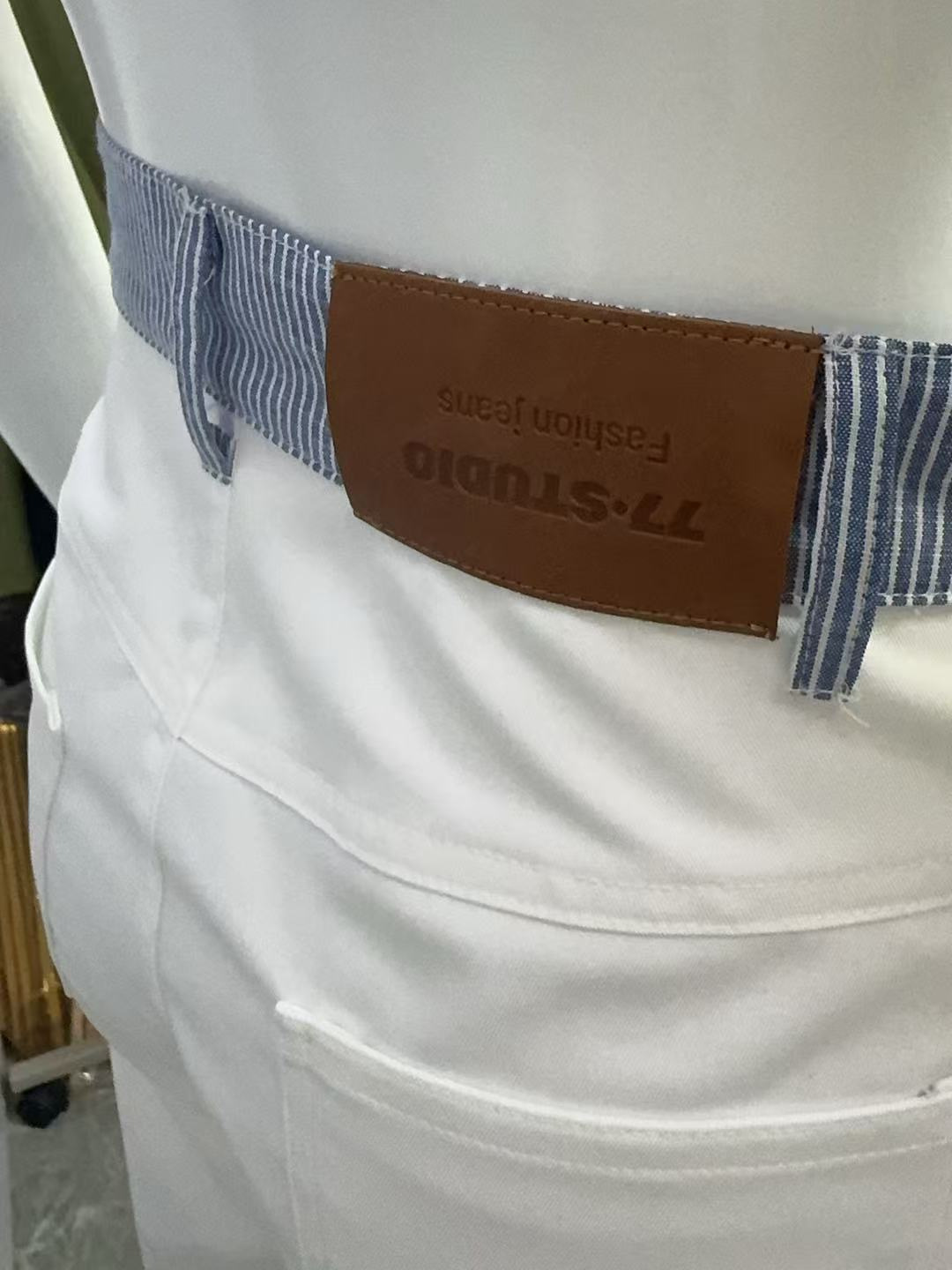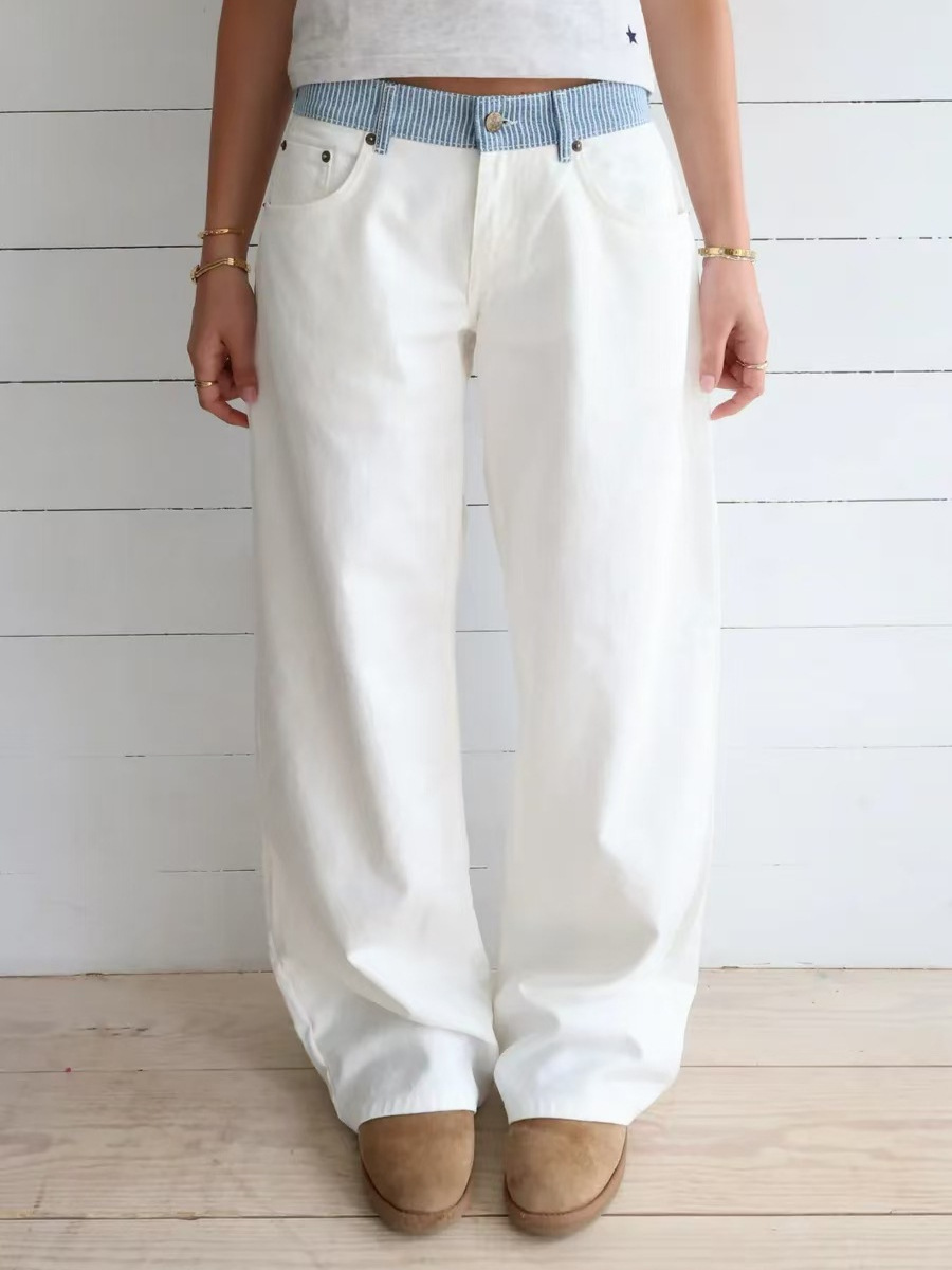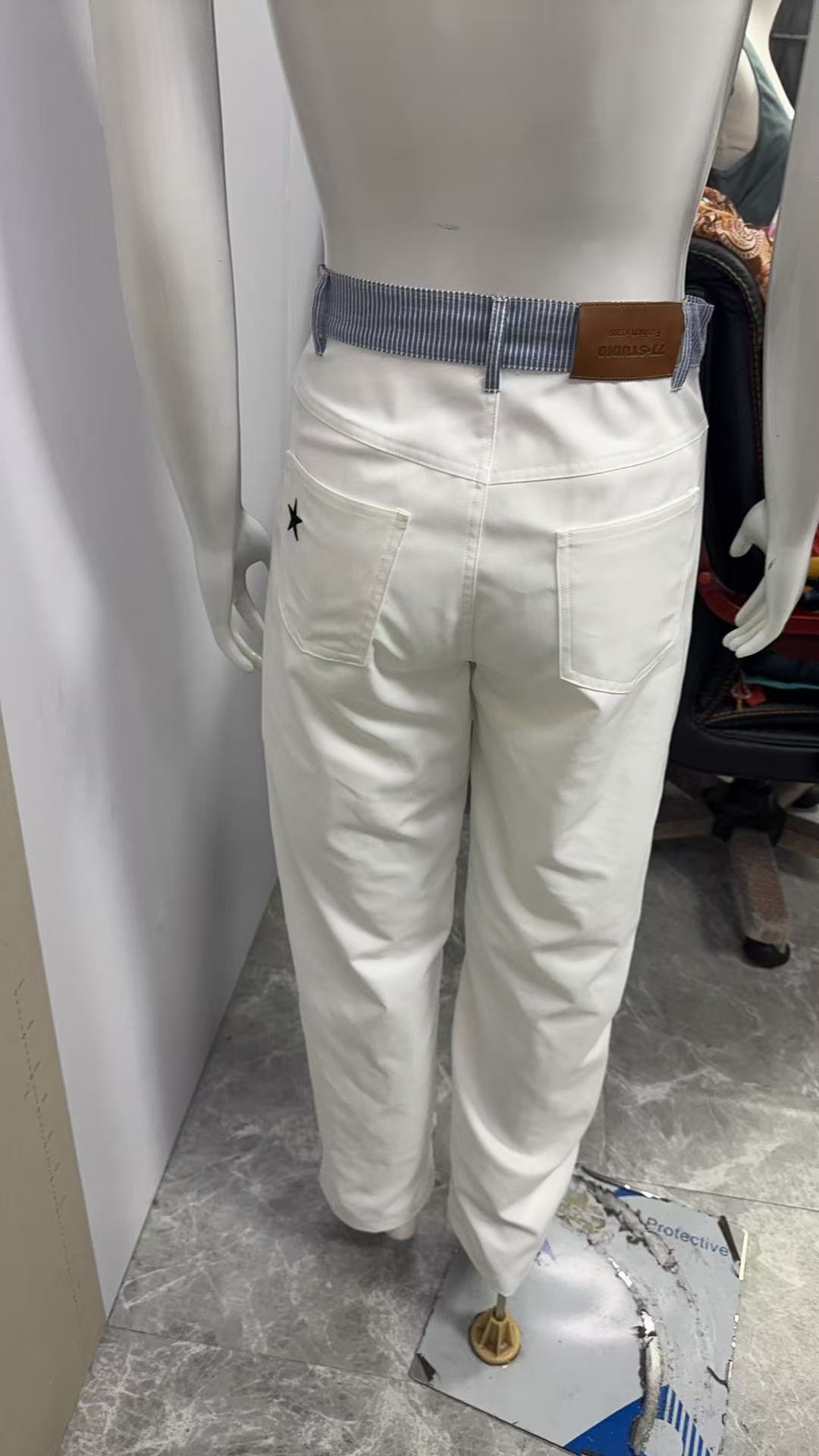 2025 Весна/Лето Новый стиль Прямые брюки с контрастной цветной лентой и декором Элегантные прямые джинсы.