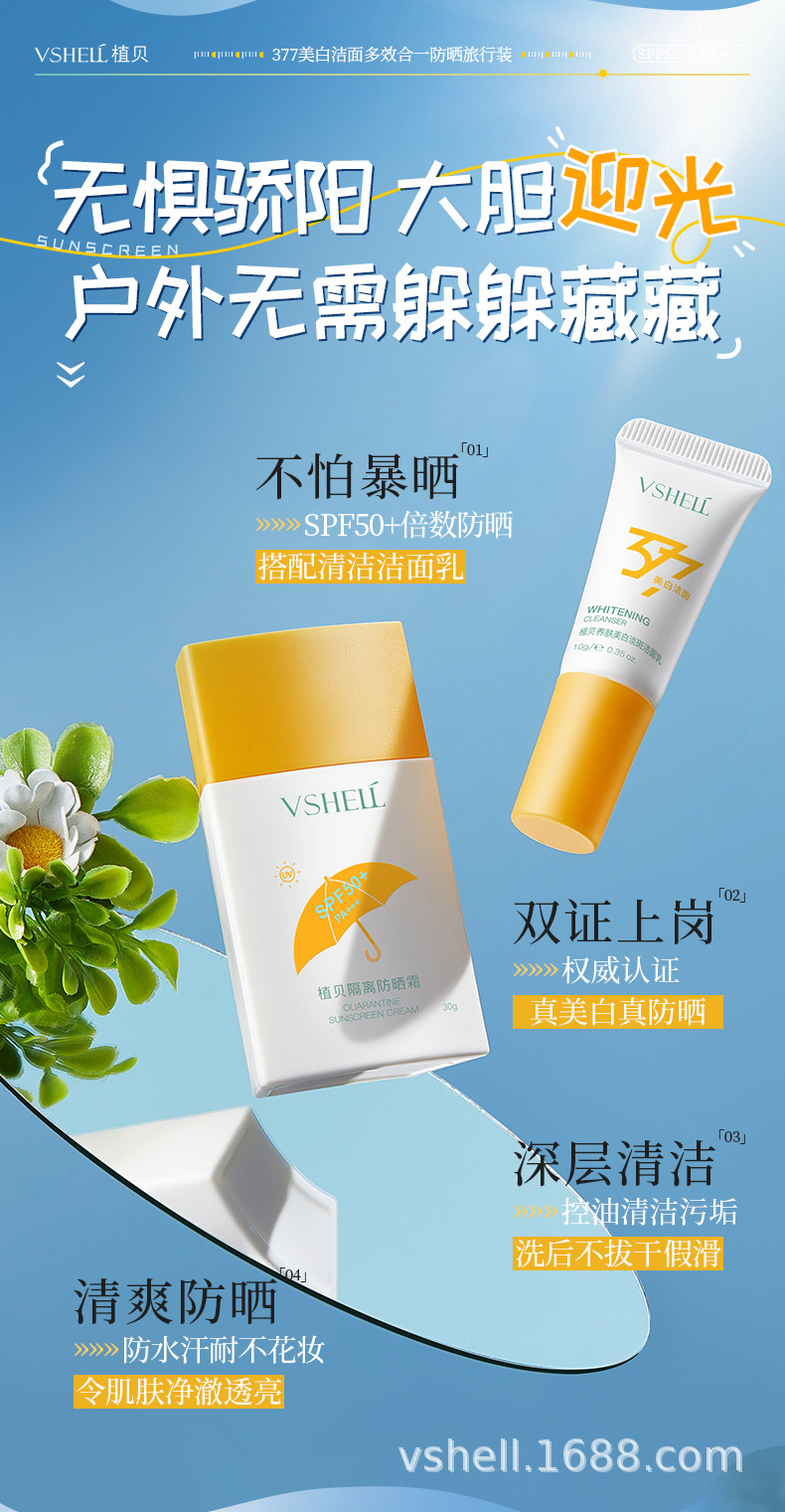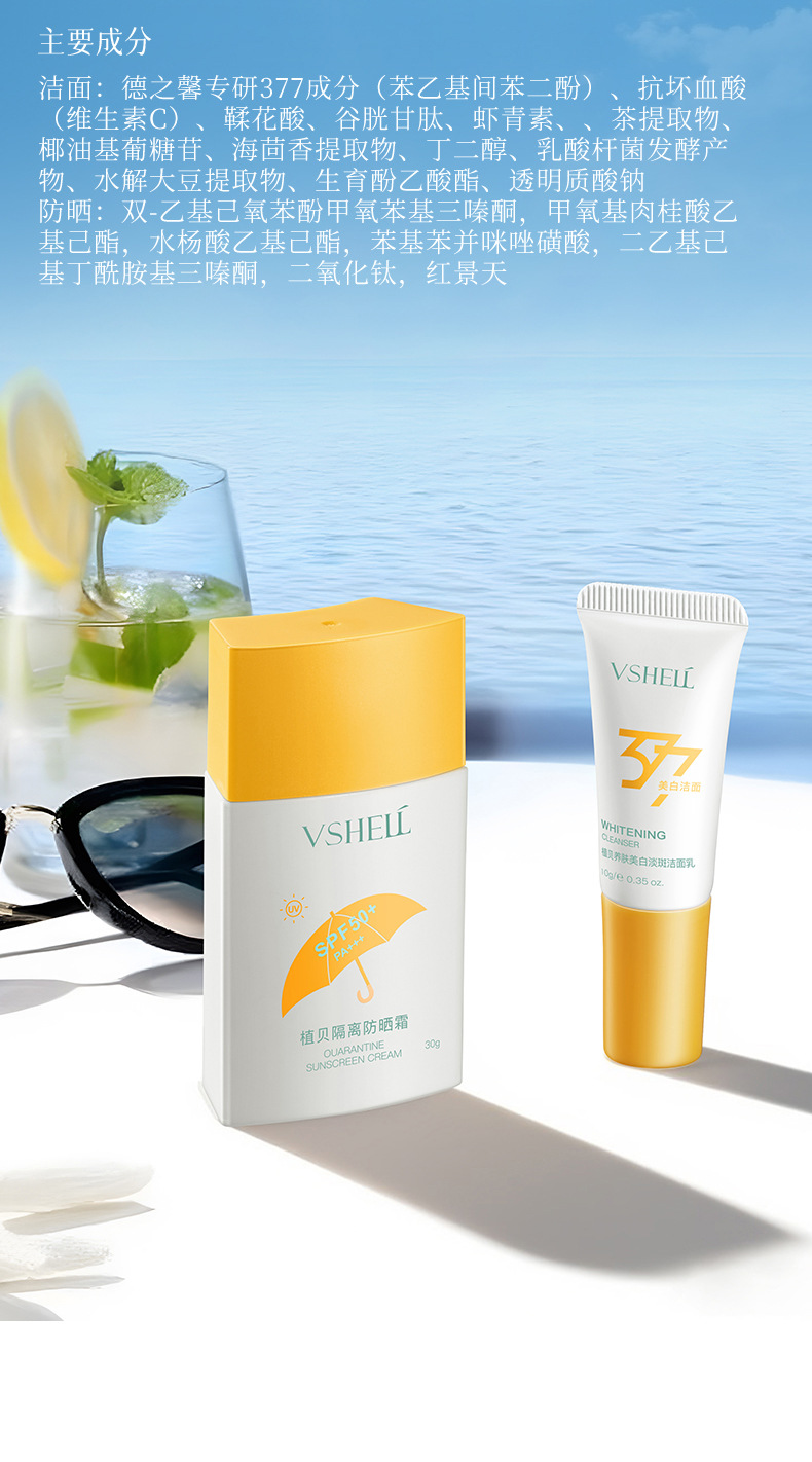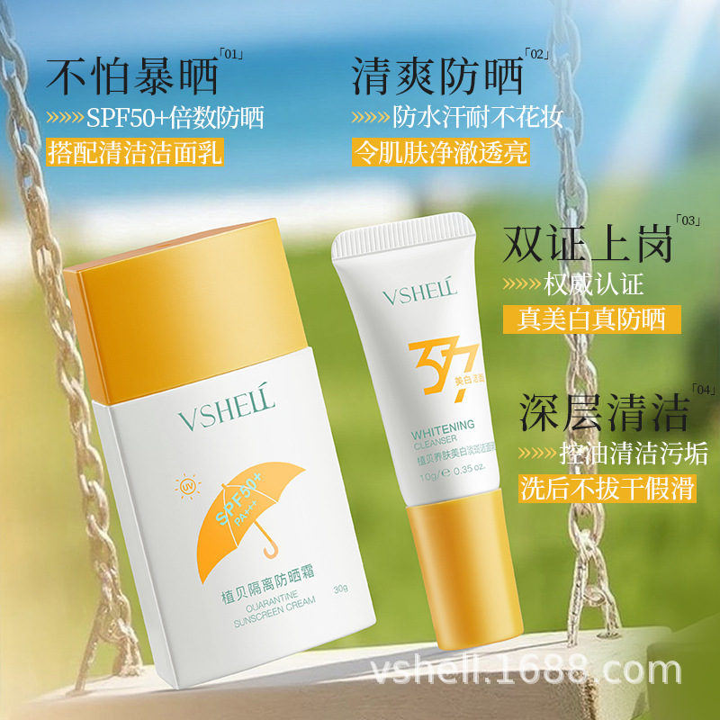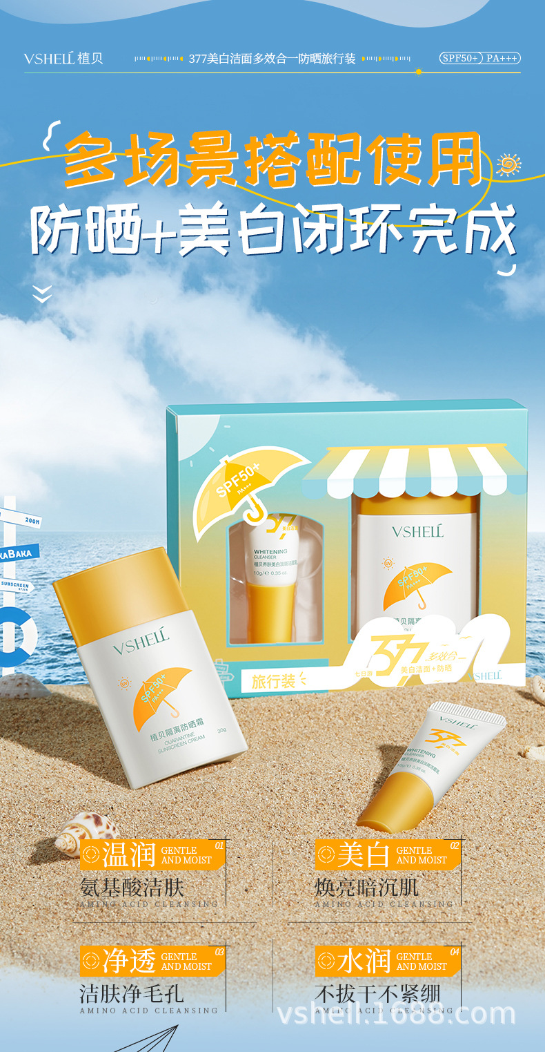 377 Отбеливающий очищающий мультиэффектный солнцезащитный крем для путешествий (набор из двух штук)