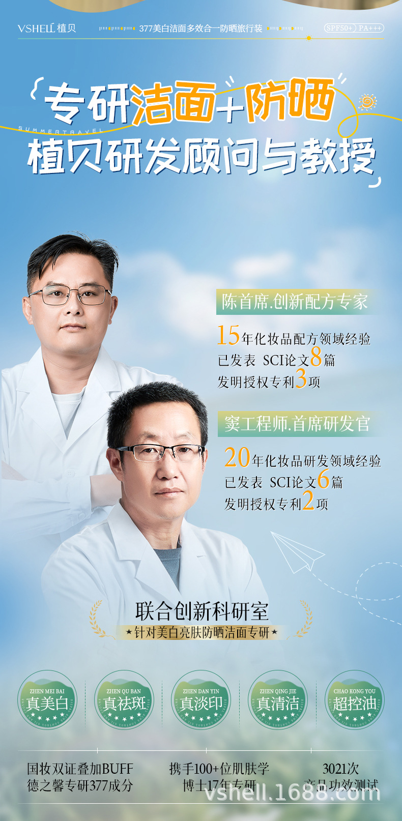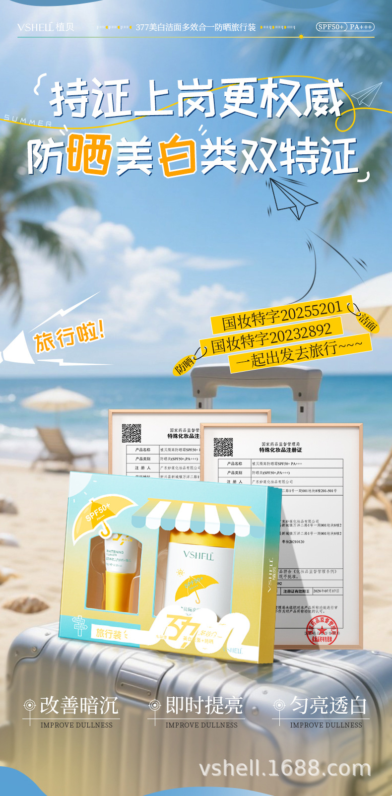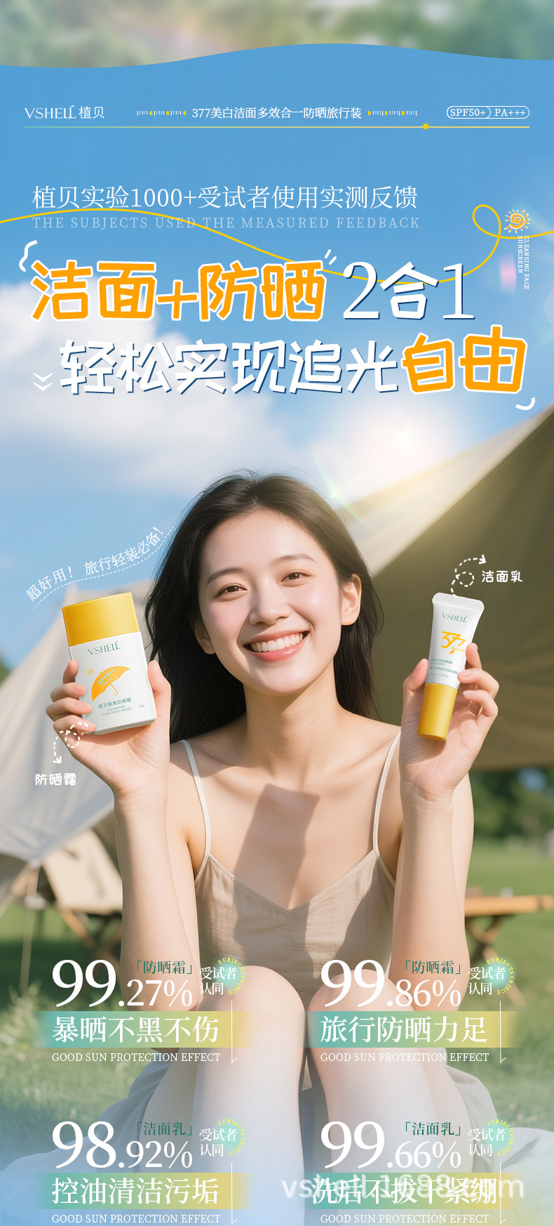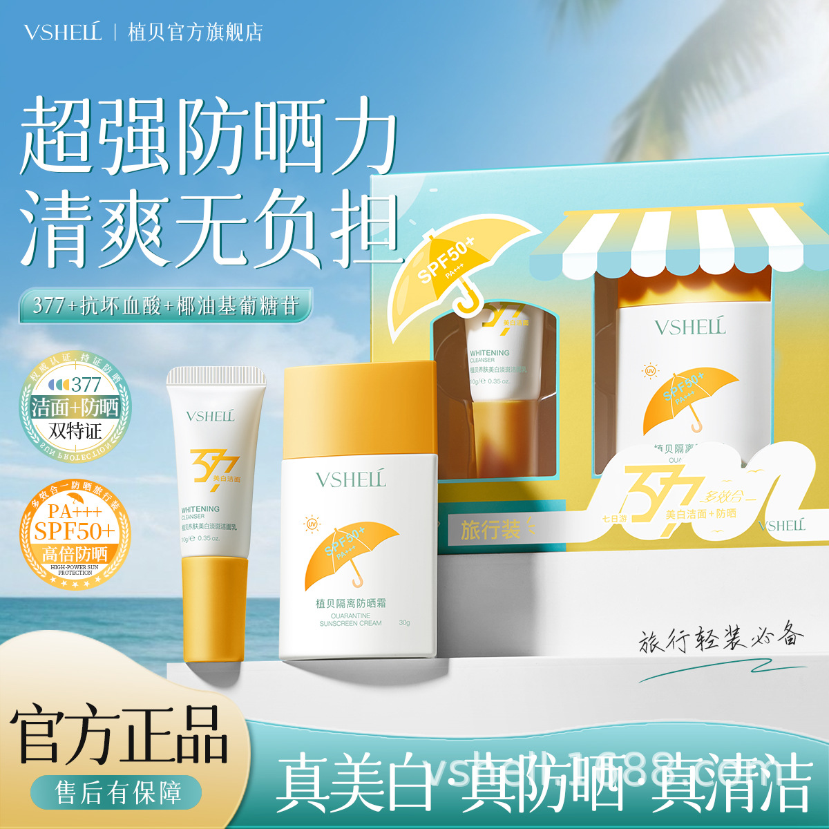 377 Отбеливающий очищающий мультиэффектный солнцезащитный крем для путешествий (набор из двух штук)
