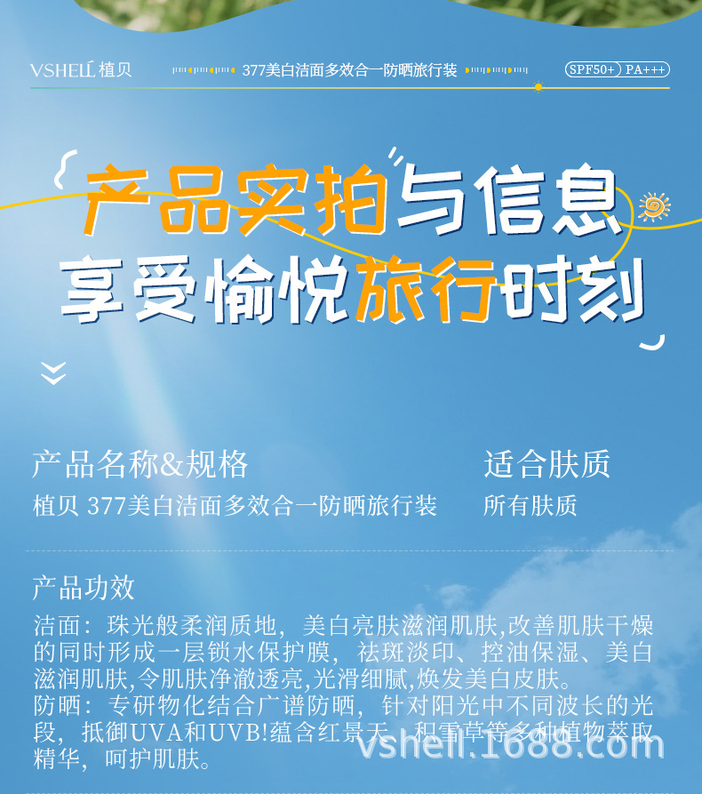 Zhibei 377 Отбеливающий очищающий мультиэффектный солнцезащитный крем для путешествий