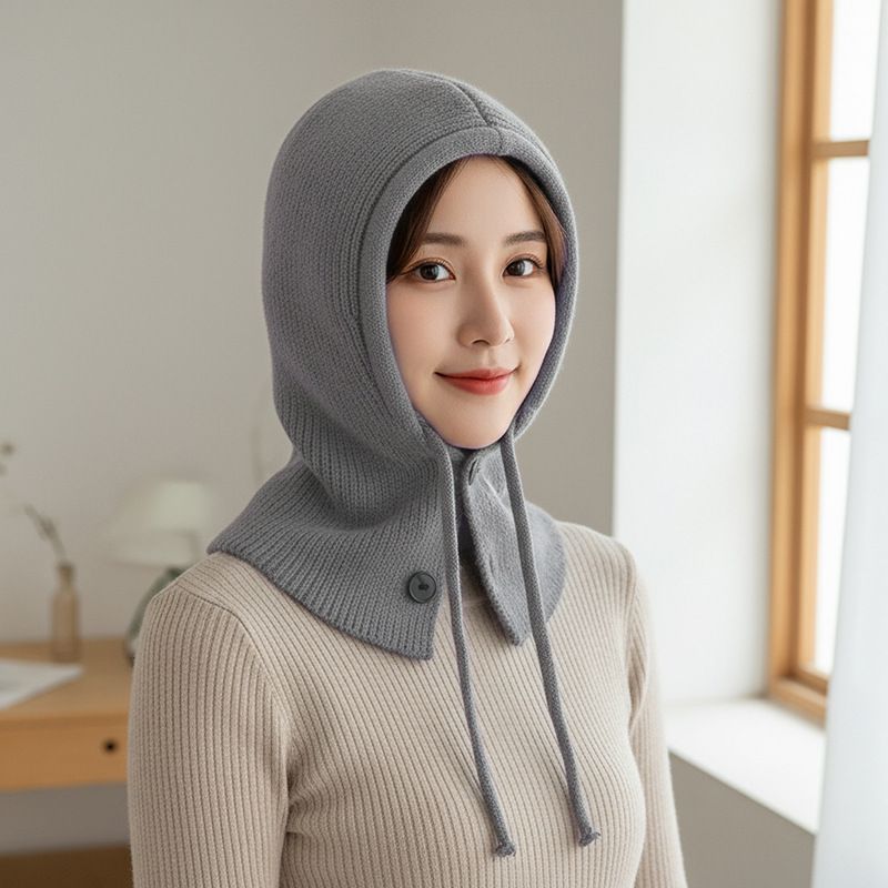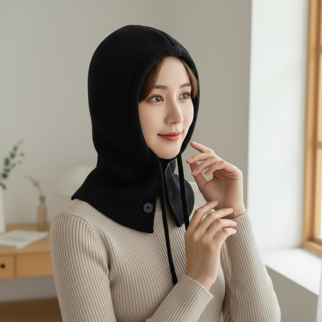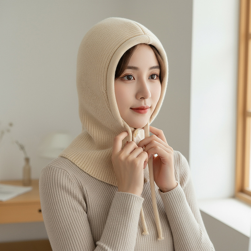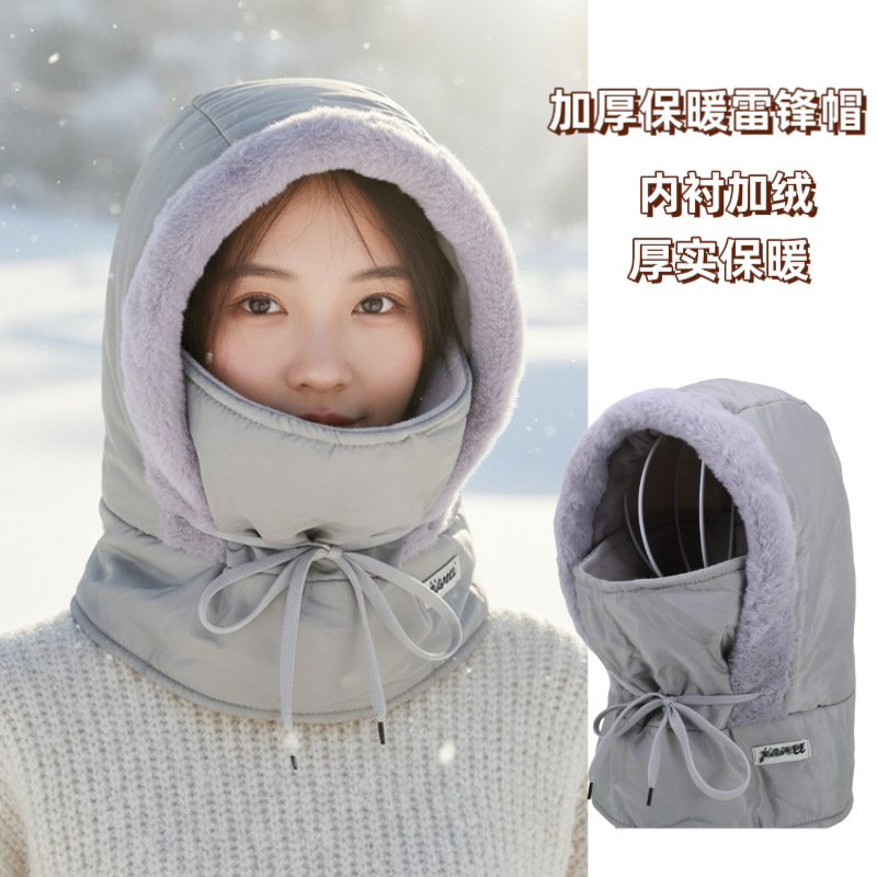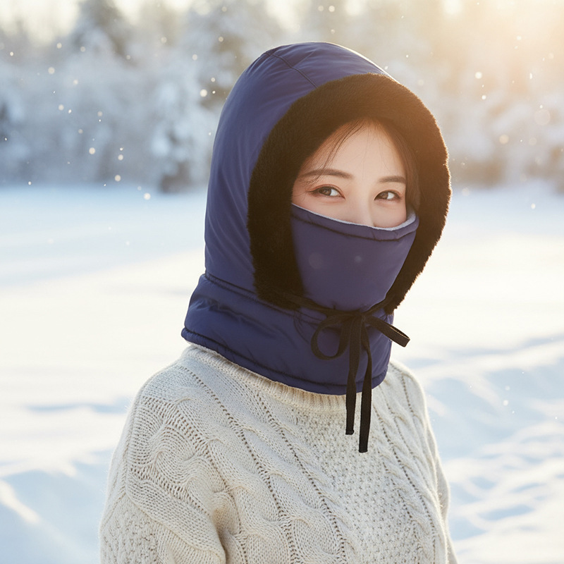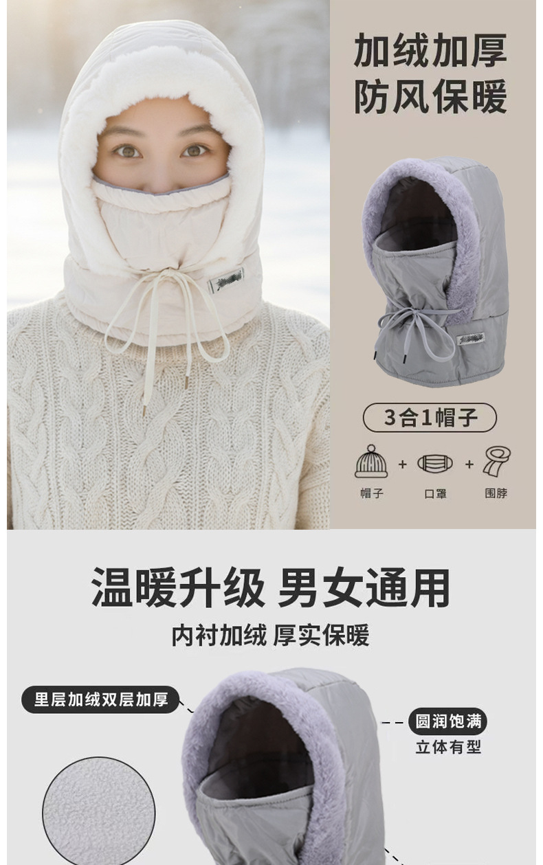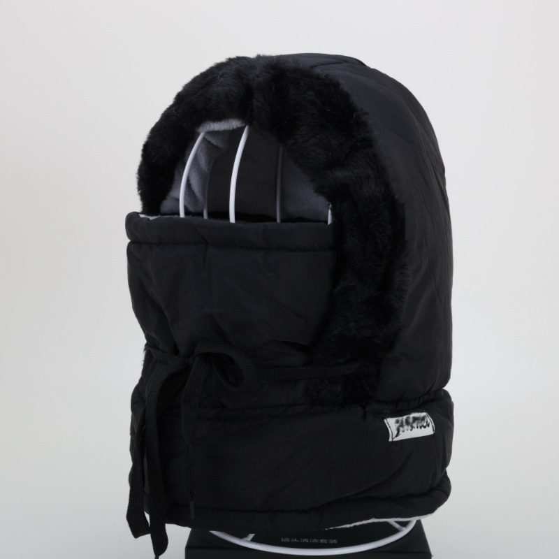 Зимняя теплая шапка-балаклава с интегрированной маской для лица для мужчин, ветрозащитная головная шапка для активного отдыха, утолщенная шапка-пуловер с защитой шеи и регулируемым шнурком.