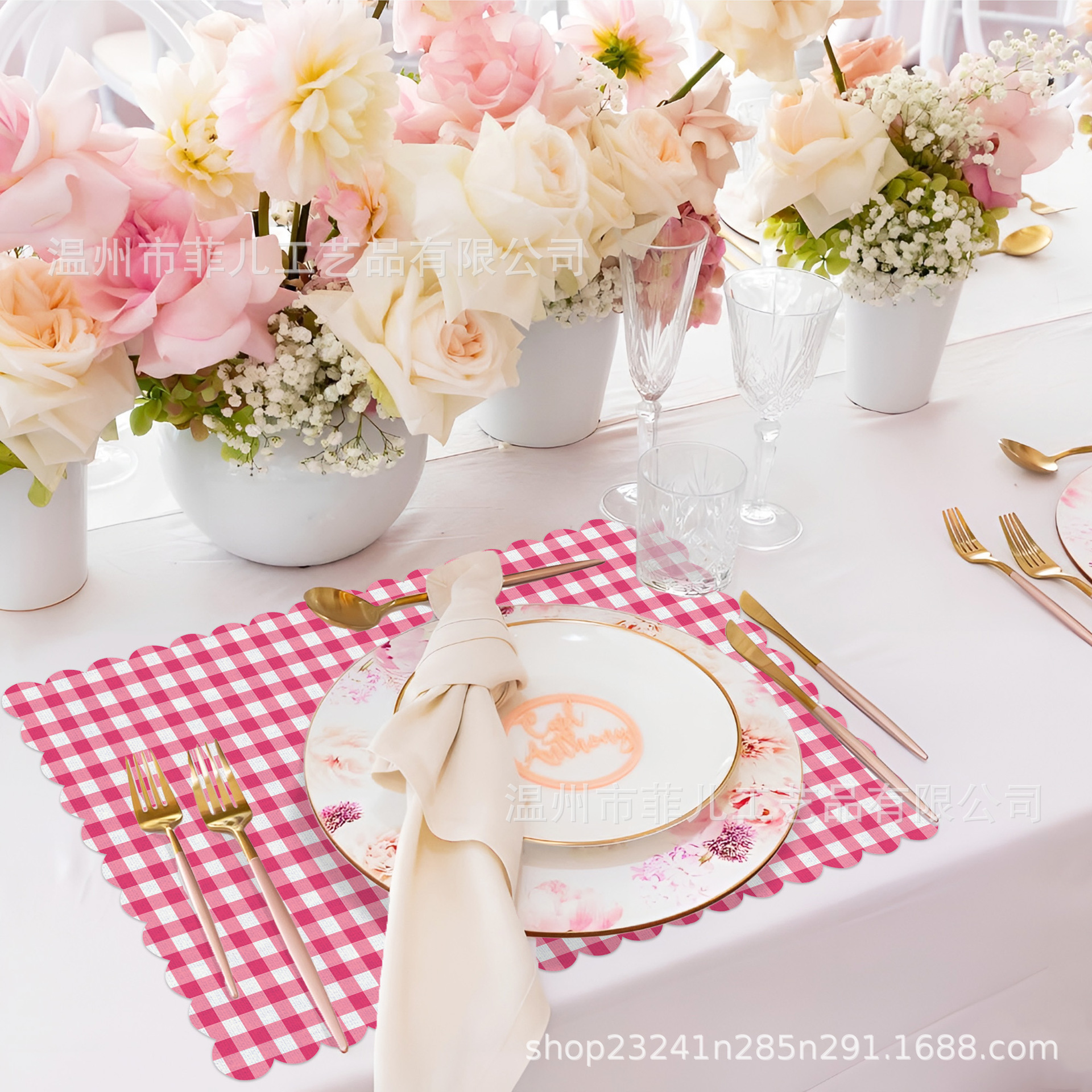 CA080 Розово-красные кружевные салфетки специальной формы, украшение для вечеринки, посуда, клетчатое украшение, одноразовые салфетки специальной формы