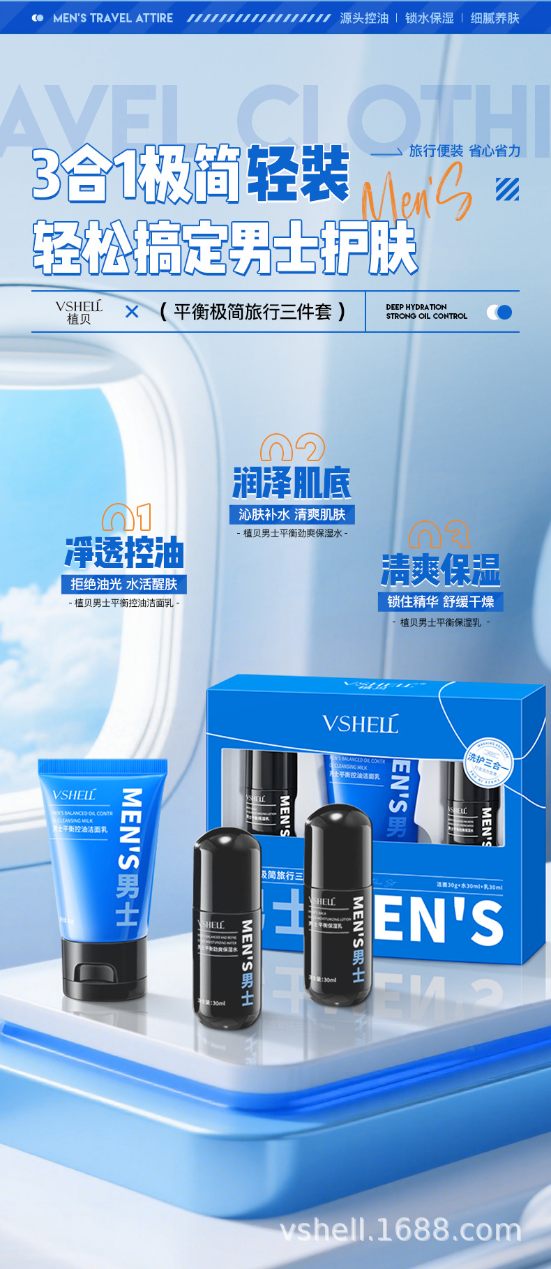 Мужской набор для путешествий Balance Minimalist: очищающее средство для лица, увлажняющий крем и скраб для лица. Оптом.