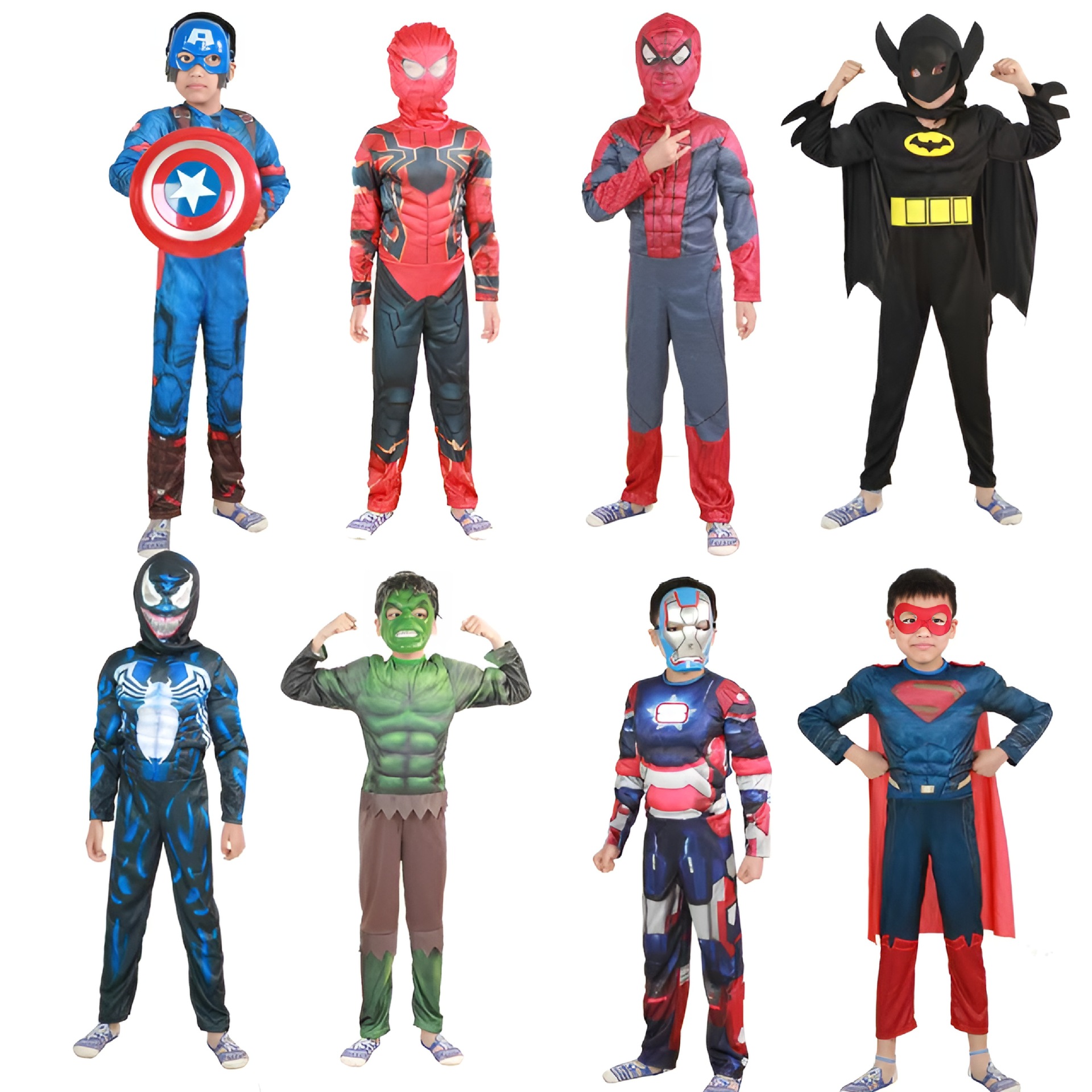 Красный Железный Человек + Маска; Желтый Железный Человек + Маска; Новый Молния Халк + Маска; Мускульный костюм Халка + Маска; Синий Железный Человек + Маска; черный Бэтмен; Капитан Америка B Style + Маска; Мускульный костюм Optimus Prime + маска; Синий Бэтмен+Маска; Костюм Тора + Маска; Костюм мышц Черной Пантеры + Маска; Черная Пантера + Маска + Пара когтей; Костюм Росомахи + Маска; Халк + маска + пара когтей; Флэш без обуви + головной убор; Чехол для обуви с ремнем для мышц Flash + капюшон на ремне; Человек-паук + головной убор; Костюм железного паука + головной убор; старый супермен; новый супермен; Мышечный костюм Венома; Квантовый костюм; Могучие рейнджеры; мышечный костюм Дэдпула; звуковой ребенок; Детские какашки (один размер подходит всем); Отходы для взрослых (один размер подходит всем); йода; Чудо-женщина; Олаф; рыба-клоун; вампир+маска; морской король; Набор «Божья коровка» из 5 предметов.; Комплект Ледибаг из 5 предметов + серьги; черный кот; Цельный комбинезон «Божья коровка»; парик божьей коровки; парик черной кошки; Маска для глаз Божья коровка + сумка