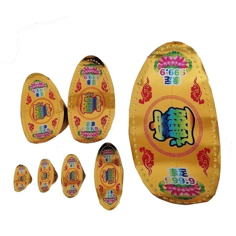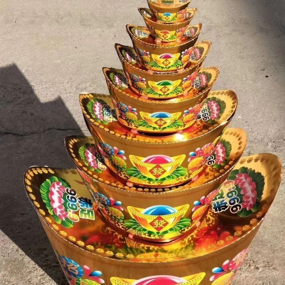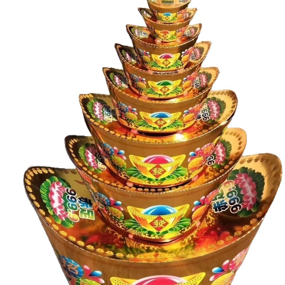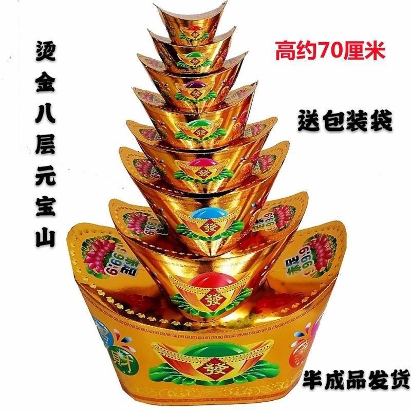 Похоронные принадлежности: красочные восьмислойные горы из золота и серебра, бумажные подносы для ритуалов и похорон.
