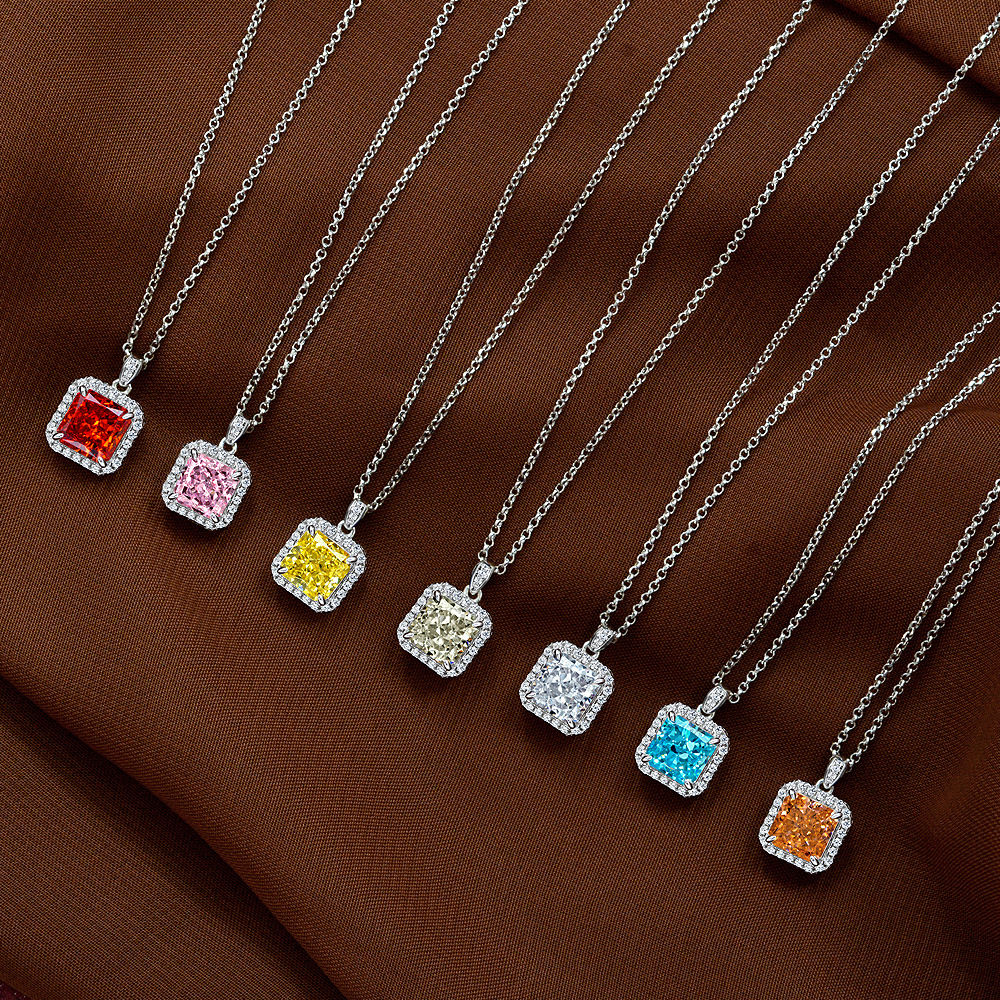 Новое ожерелье из серебра 925 пробы от Shipei Jewelry, квадратное ожерелье 7*7 с высокоуглеродистым бриллиантом, европейское и американское горячее предложение 40+3