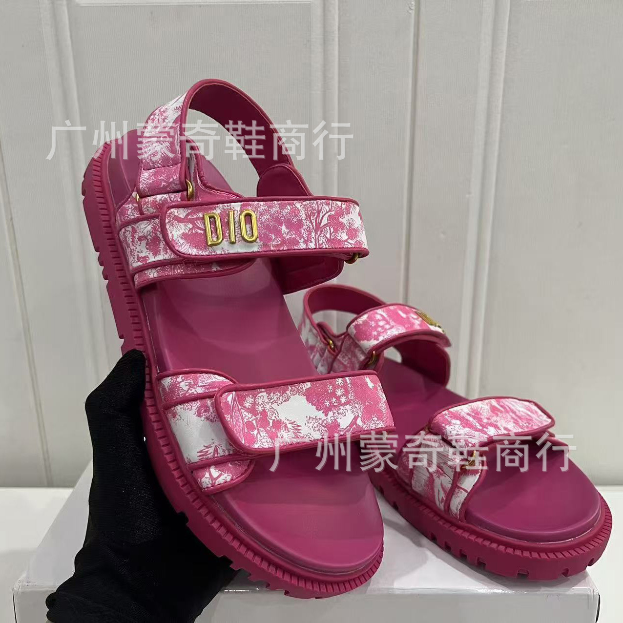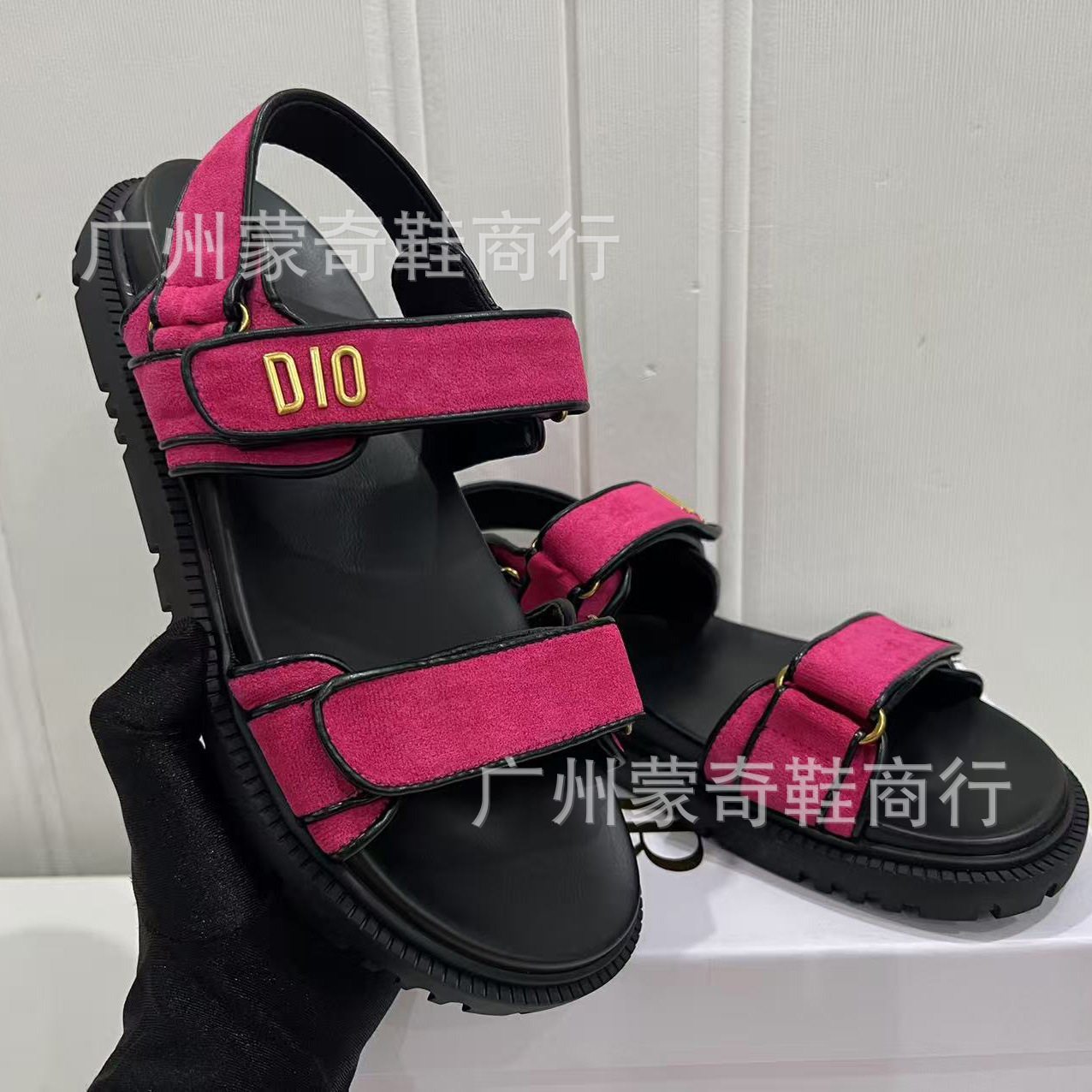 Европейские и американские женские сандалии на толстой подошве 25 весенне-летнего нового стиля, однолинейные повседневные универсальные домашние тапочки с липучкой и буквой D