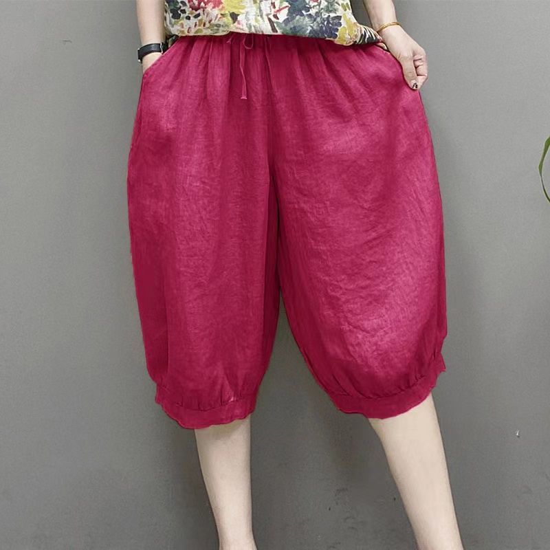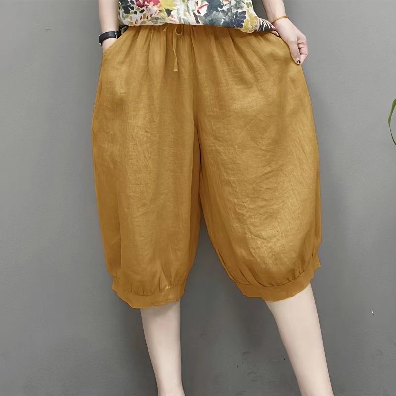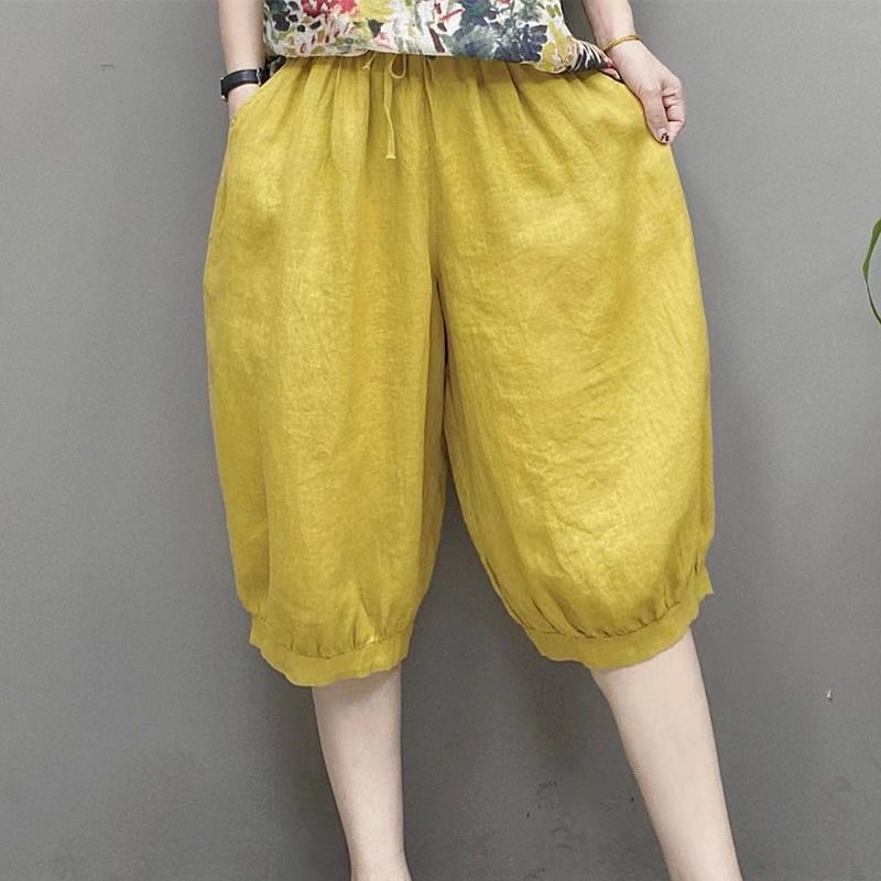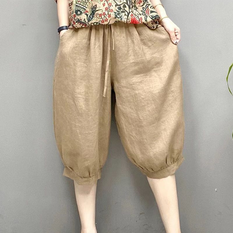 Высококачественные широкие брюки из искусственного хлопка и льна с имитацией льда и шнуровкой, свободные брюки со средней талией, новые летние свободные брюки с пятью точками для женщин