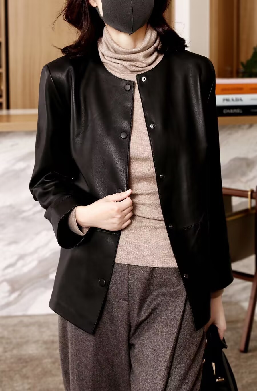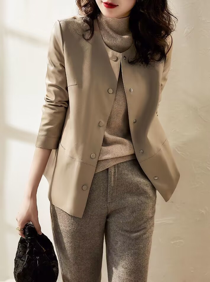 Западный стиль 2025 осень-зима новая кожаная куртка высокого качества женская утягивающая с флисовой подкладкой больших размеров повседневная куртка