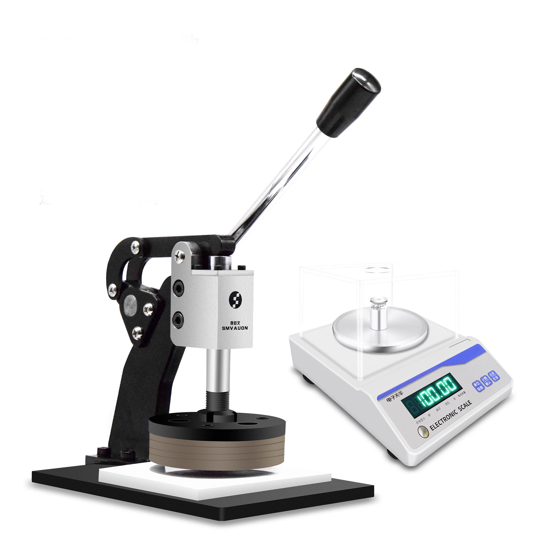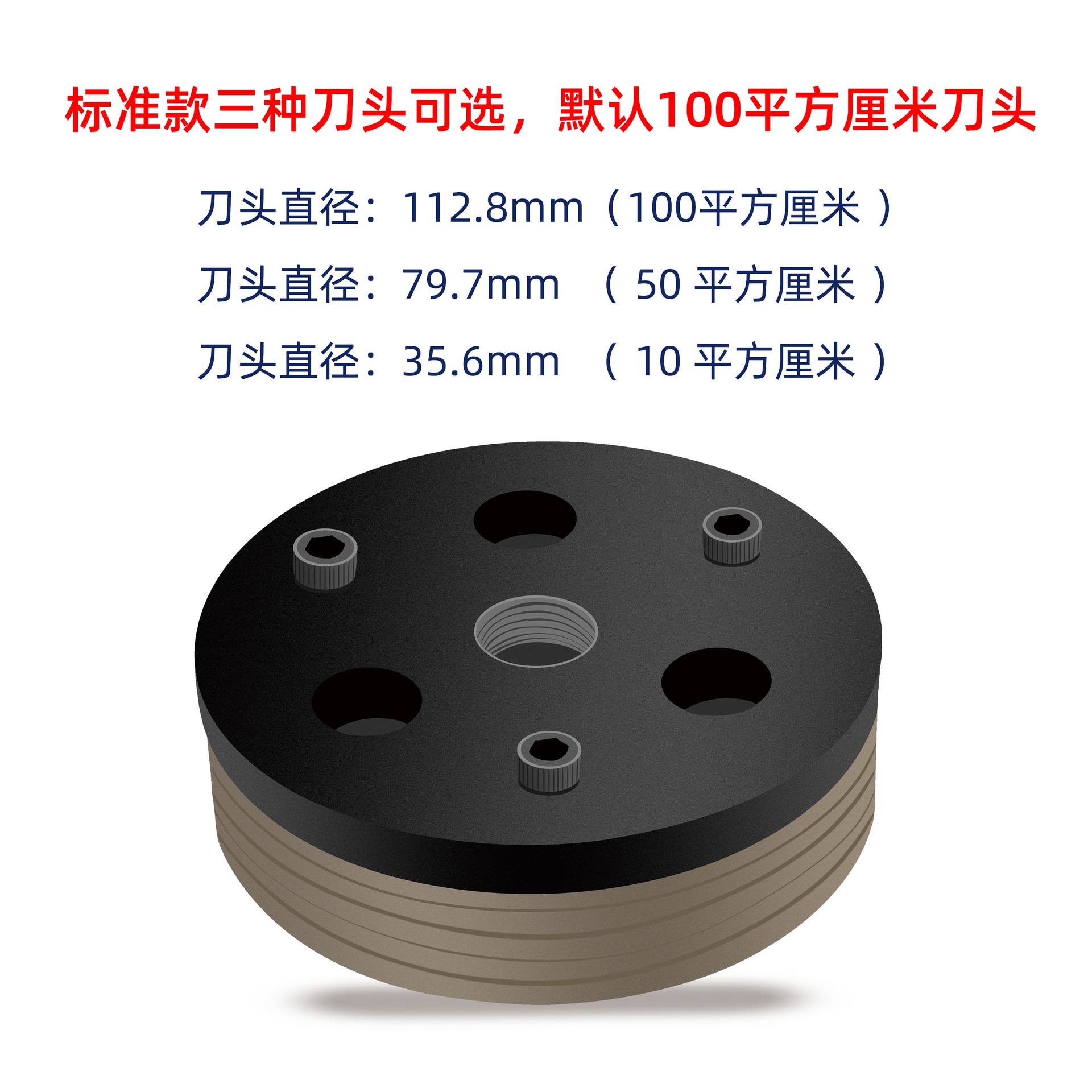 Полная машина - включая опорную пластину режущей головки (стандартная режущая головка) - круглая площадью 100 см²; Полная машина, включая опорную пластину режущей головки (режущая головка по индивидуальному заказу) — любой формы.; Стандартная режущая головка — (круг площадью 100 см² по умолчанию не входит в комплект поставки); Режущая головка по индивидуальному заказу — любая форма размером менее 140 мм.; Полная машина (стандартная режущая головка) + электронные весы, диск 300 г/0,01 г; Полная машина (специальная режущая головка) + электронные весы, диск 300 г/0,01 г.; Пять частей прозрачной опорной пластины — используйте после отрыва защитной пленки.; Стандартное лезвие (112 мм без станка); Лезвие по индивидуальному заказу (за исключением станка диаметром до 140 мм); Пресс для таблеток (может быть пресс-форма индивидуальной формы)