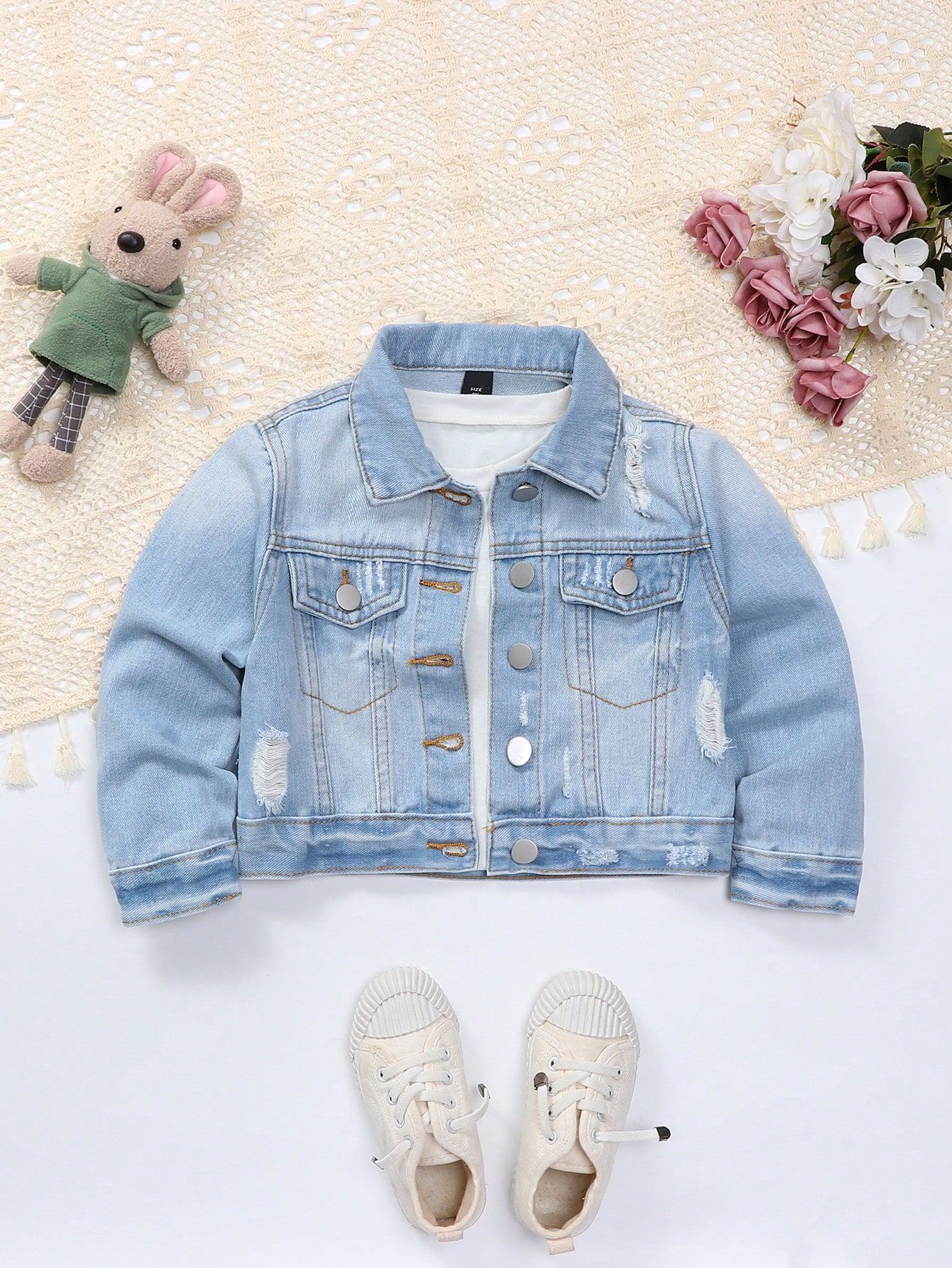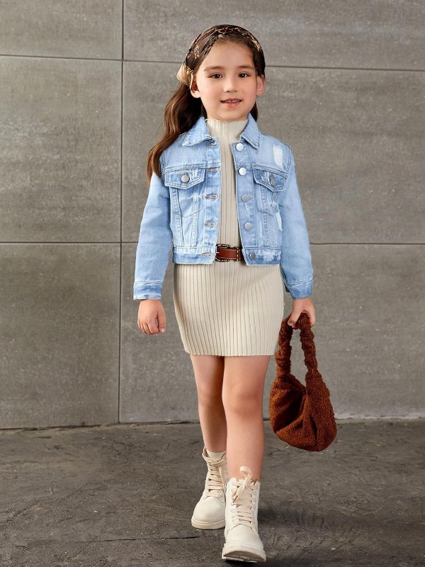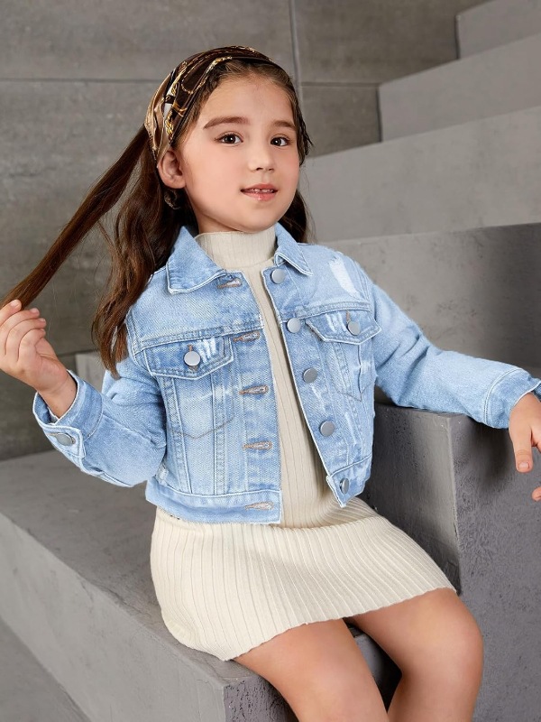 Amazon AliExpress специализируется на высококачественной модной одежде для девочек 2025 года, новая модная рваная джинсовая куртка с лацканами