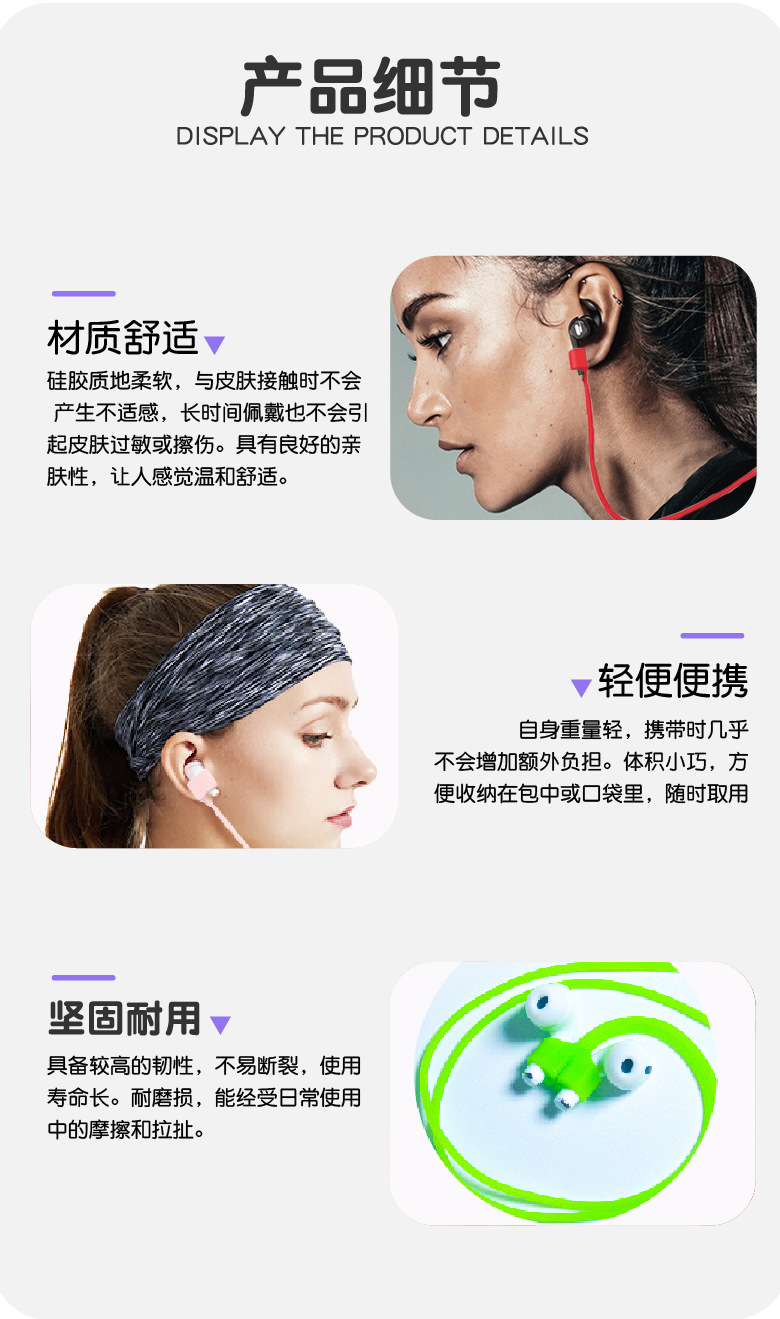 Оптовая продажа, магнитная силиконовая веревка для наушников, устойчивая к износу, устойчивая к поту, противоскользящая спортивная веревка для наушников с Bluetooth-наушниками